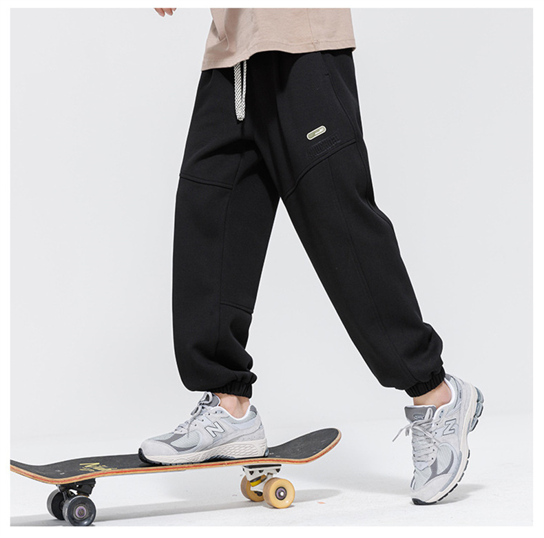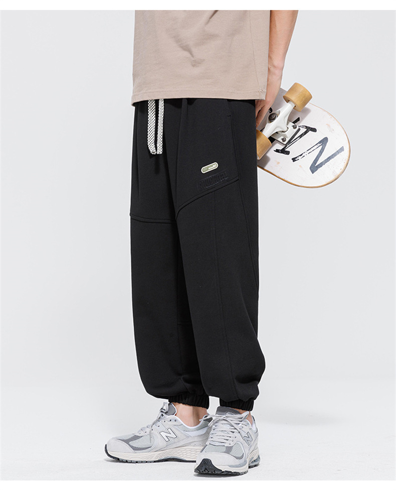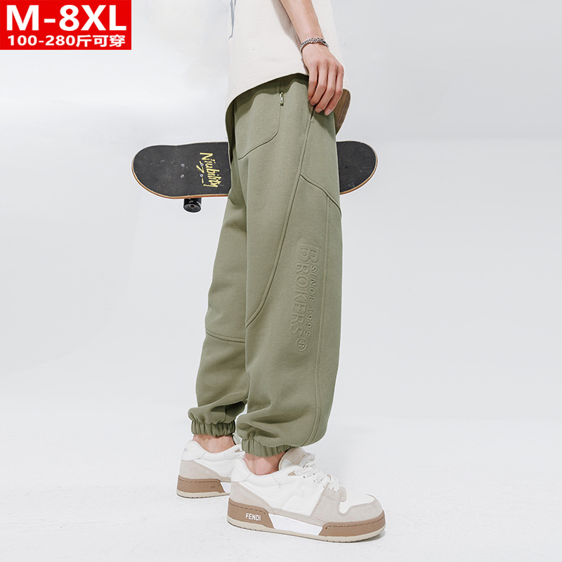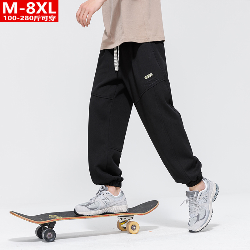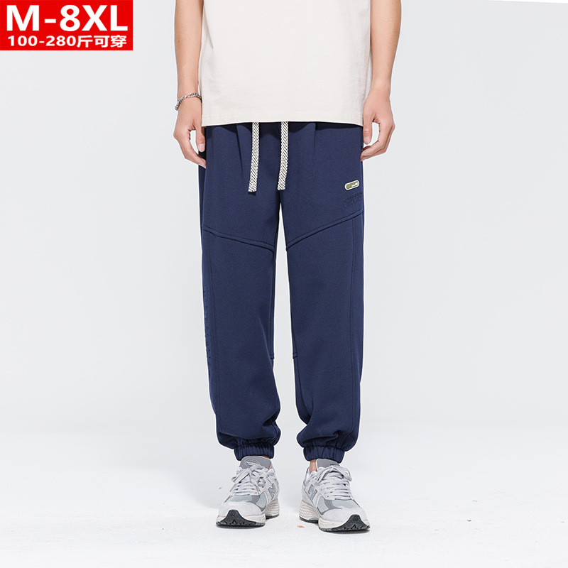 봄과 가을의 트렌디 한 홍콩 스타일 남성 스티칭 발목 넥타이 니트 스웻 팬츠 대형 플러스 사이즈 느슨한 스포츠 캐주얼 바지