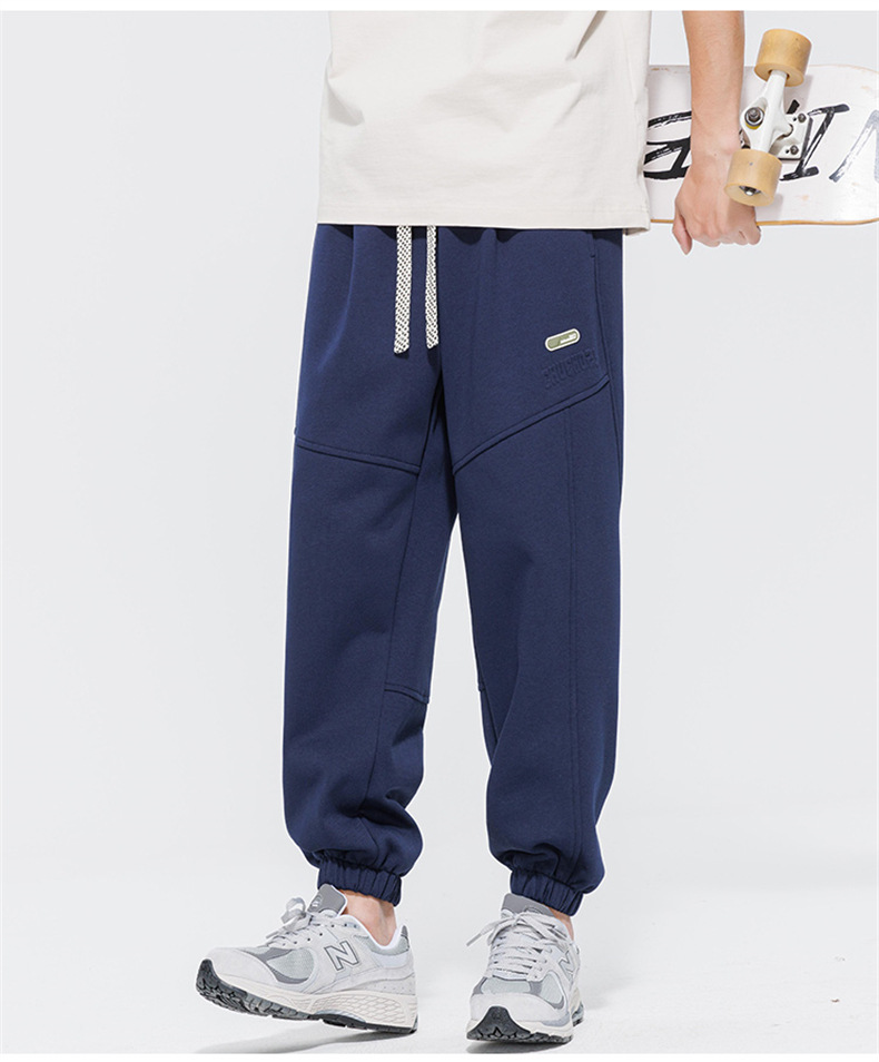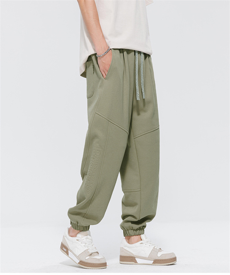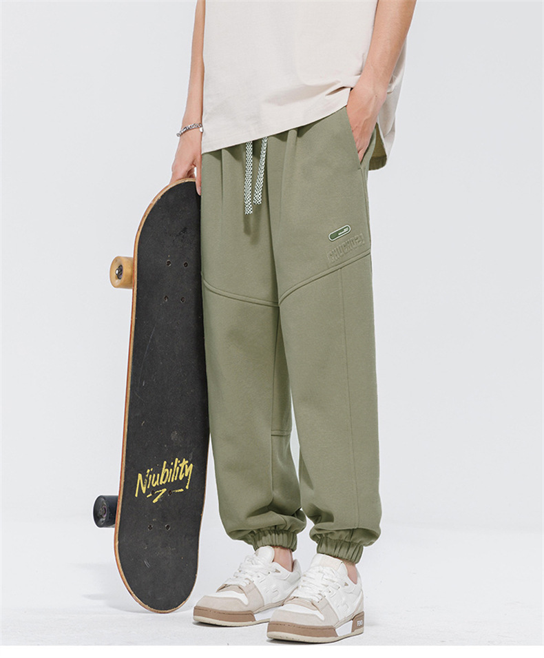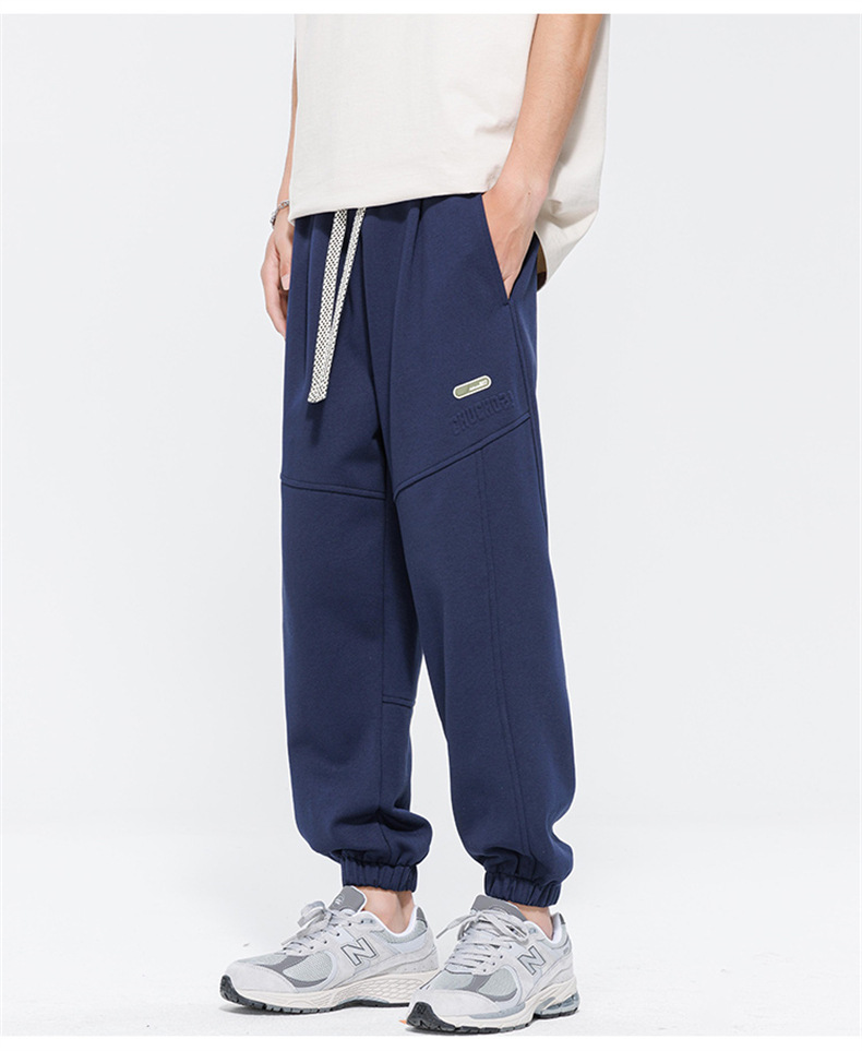 봄과 가을의 트렌디 한 홍콩 스타일 남성 스티칭 발목 넥타이 니트 스웻 팬츠 대형 플러스 사이즈 느슨한 스포츠 캐주얼 바지