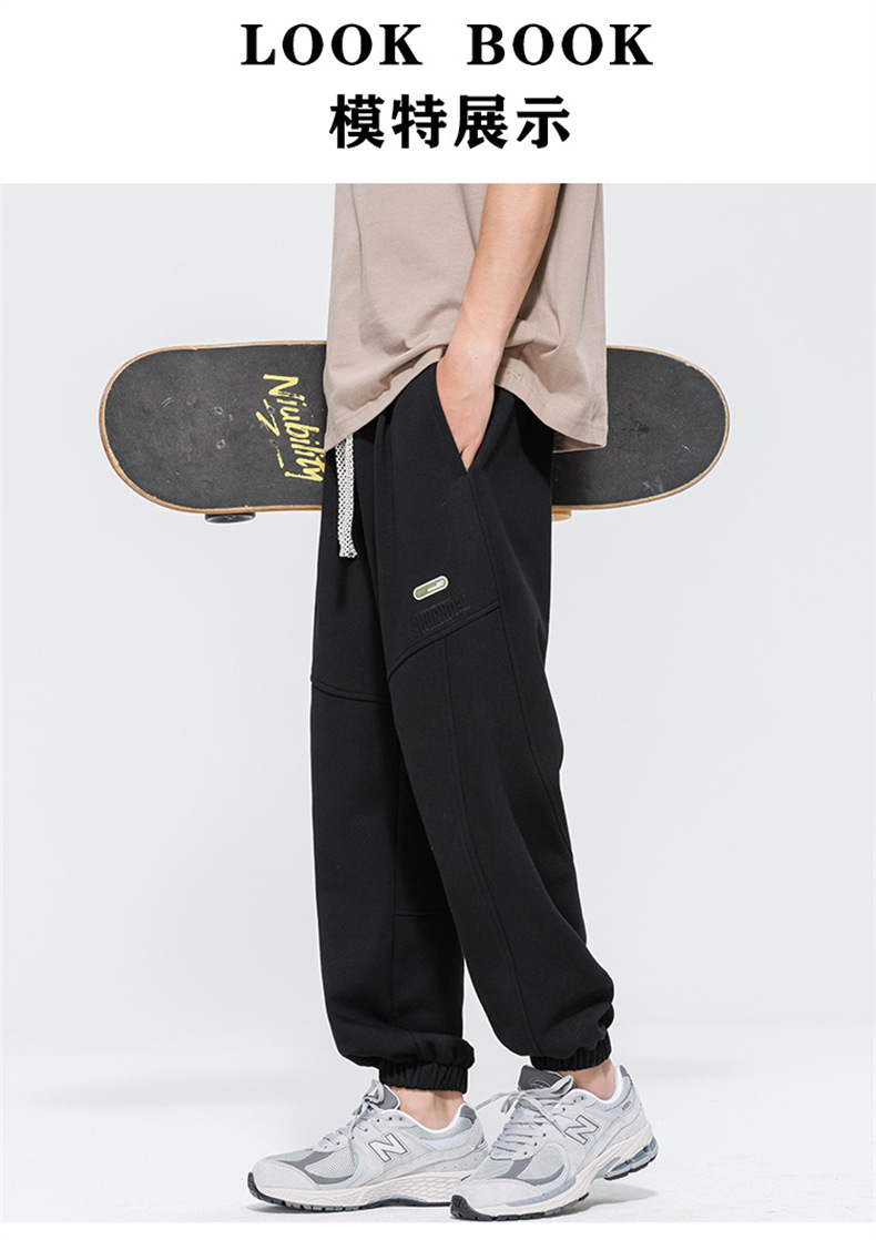 봄과 가을의 트렌디 한 홍콩 스타일 남성 스티칭 발목 넥타이 니트 스웻 팬츠 대형 플러스 사이즈 느슨한 스포츠 캐주얼 바지스토어 가기