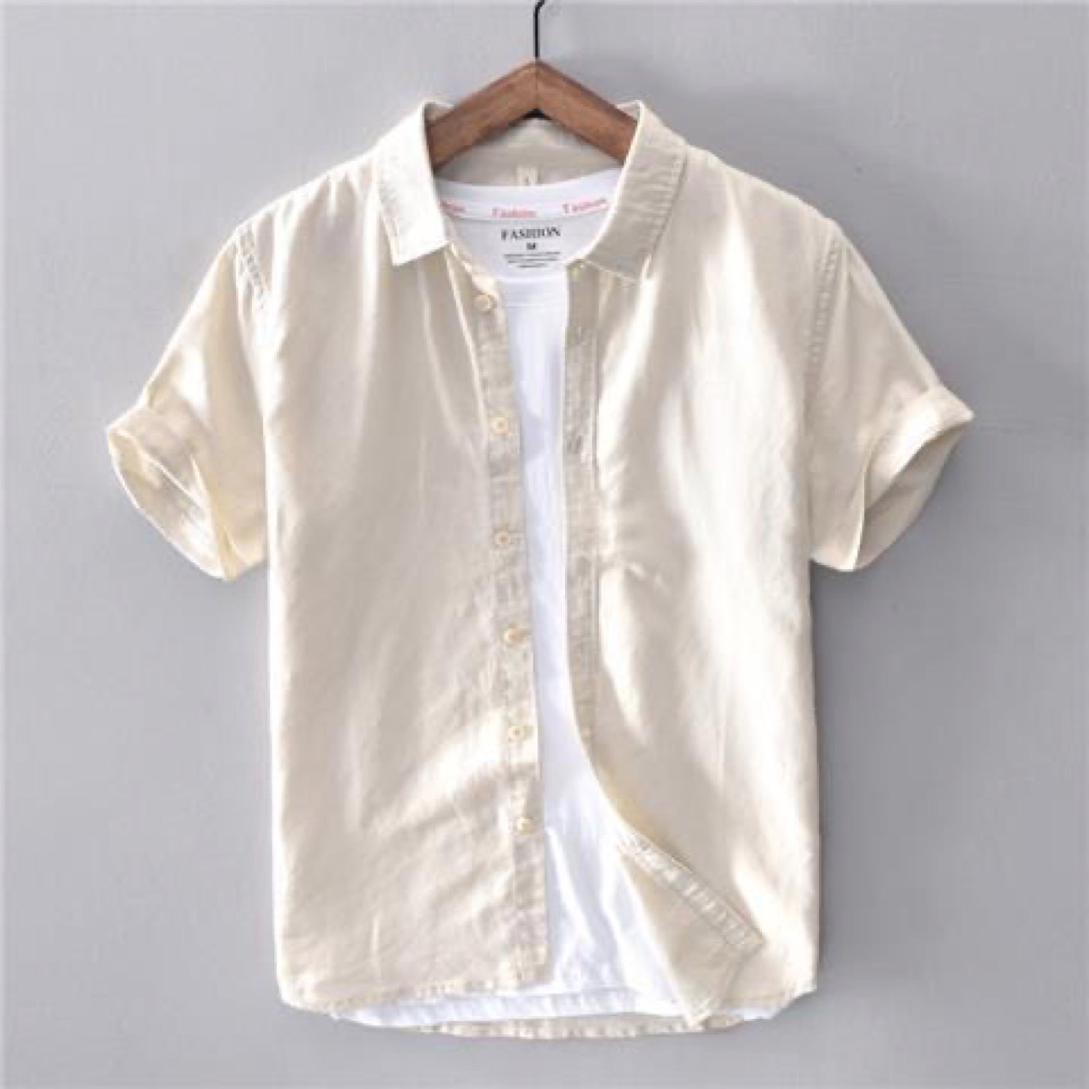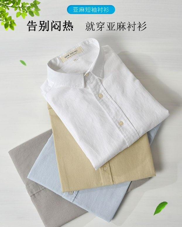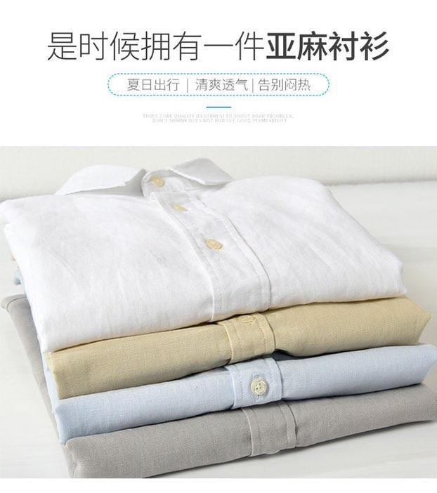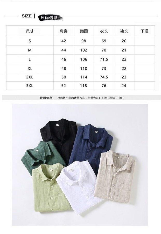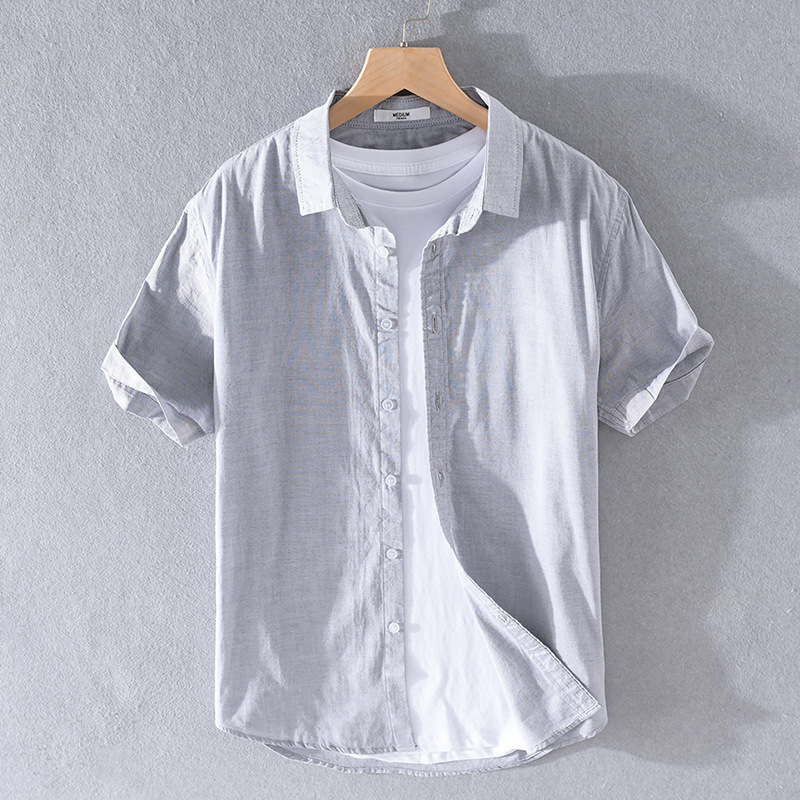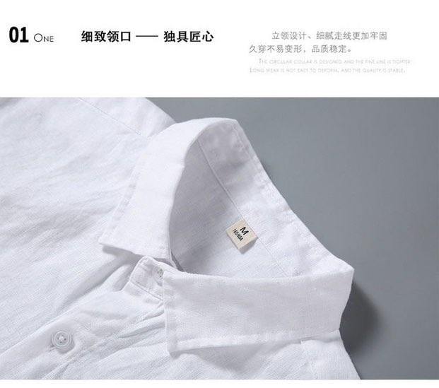 통기성 좋은 순면 린넨 셔츠 남성용 반팔 루즈핏 상의 여름용 얇은 라펠 화이트 면마 셔츠스토어 가기