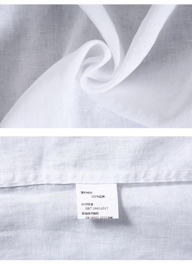 통기성 좋은 순면 린넨 셔츠 남성용 반팔 루즈핏 상의 여름용 얇은 라펠 화이트 면마 셔츠