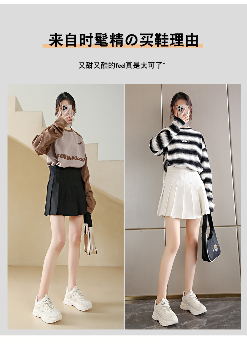 새로운 봄과 여름 통기성 한국식 올 매치 2024 여성을위한 인기있는 투박한 운동화 스포츠 피트 작은 두꺼운 밑창 높이 증가 운동화스토어 가기