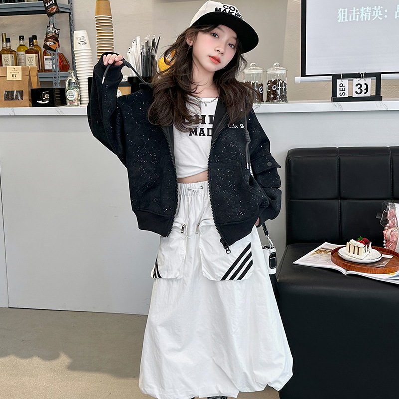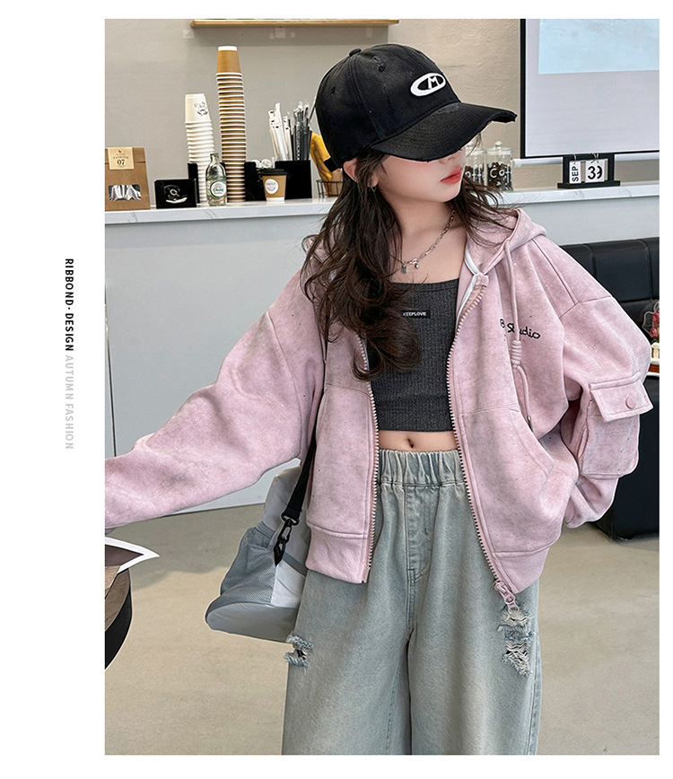 소녀의 봄 실버 후드 코트 2024 새로운 중형 및 대형 어린이 서양식 캐주얼 스웨터 카디건 윈드 브레이커 봄 의류