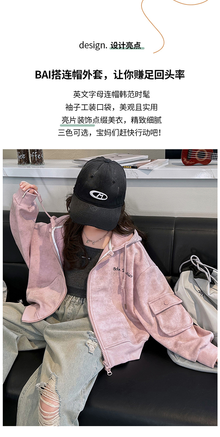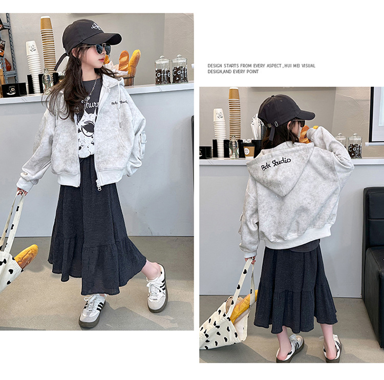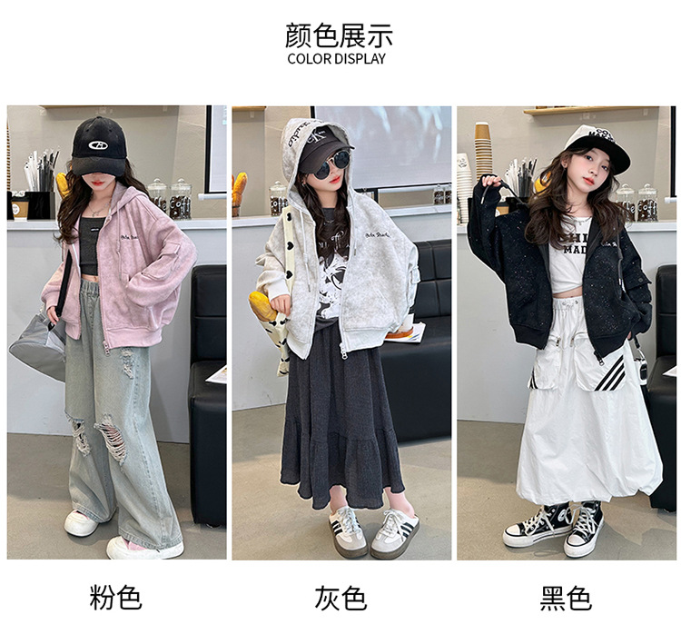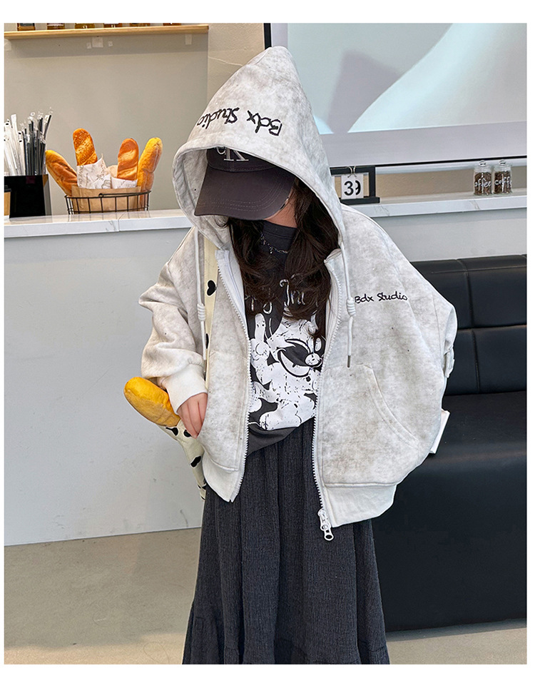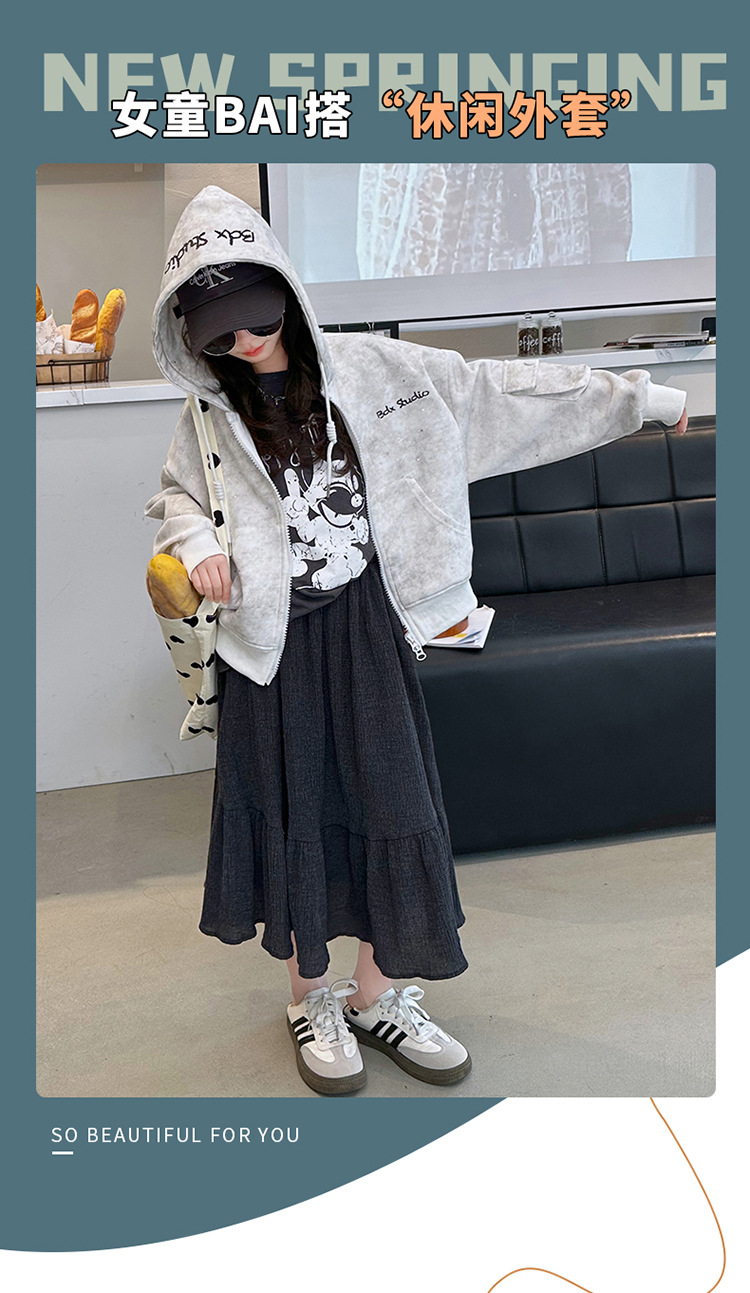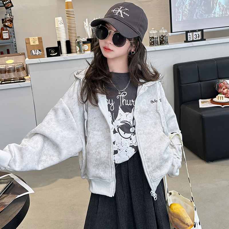 소녀의 봄 실버 후드 코트 2024 새로운 중형 및 대형 어린이 서양식 캐주얼 스웨터 카디건 윈드 브레이커 봄 의류스토어 가기