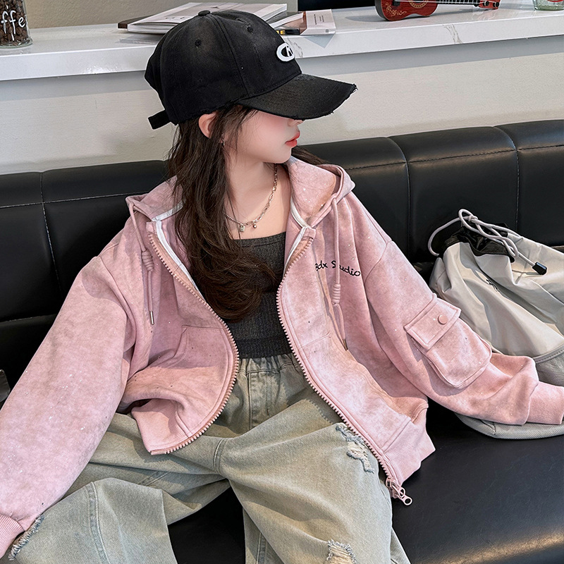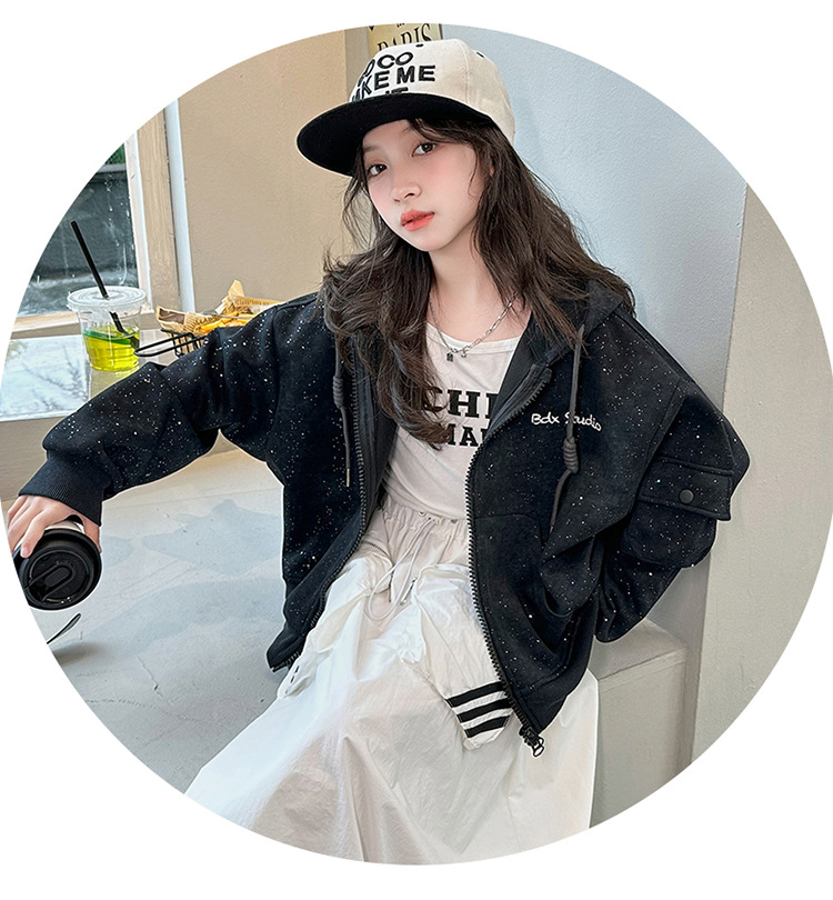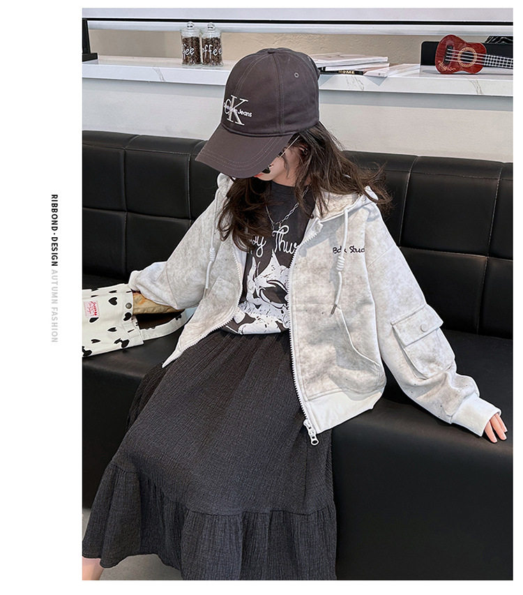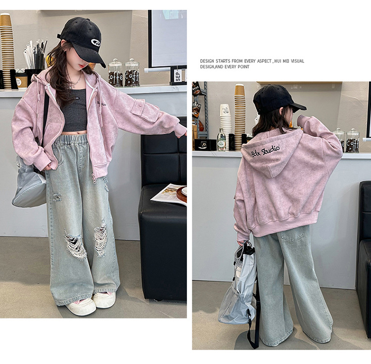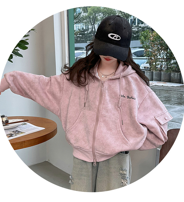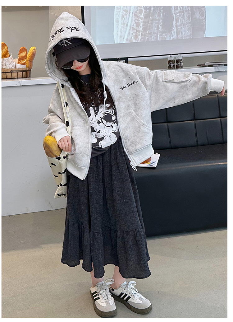 소녀의 봄 실버 후드 코트 2024 새로운 중형 및 대형 어린이 서양식 캐주얼 스웨터 카디건 윈드 브레이커 봄 의류스토어 가기