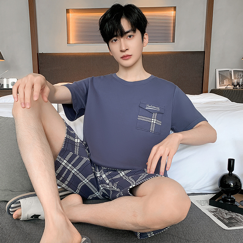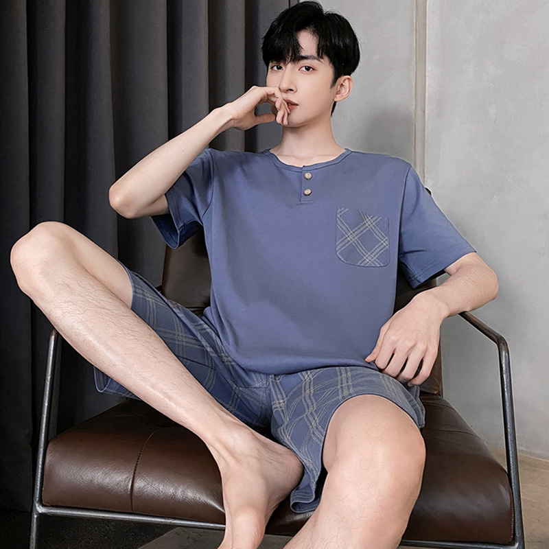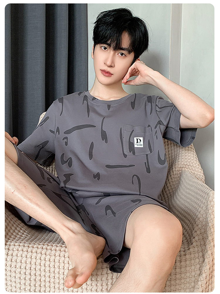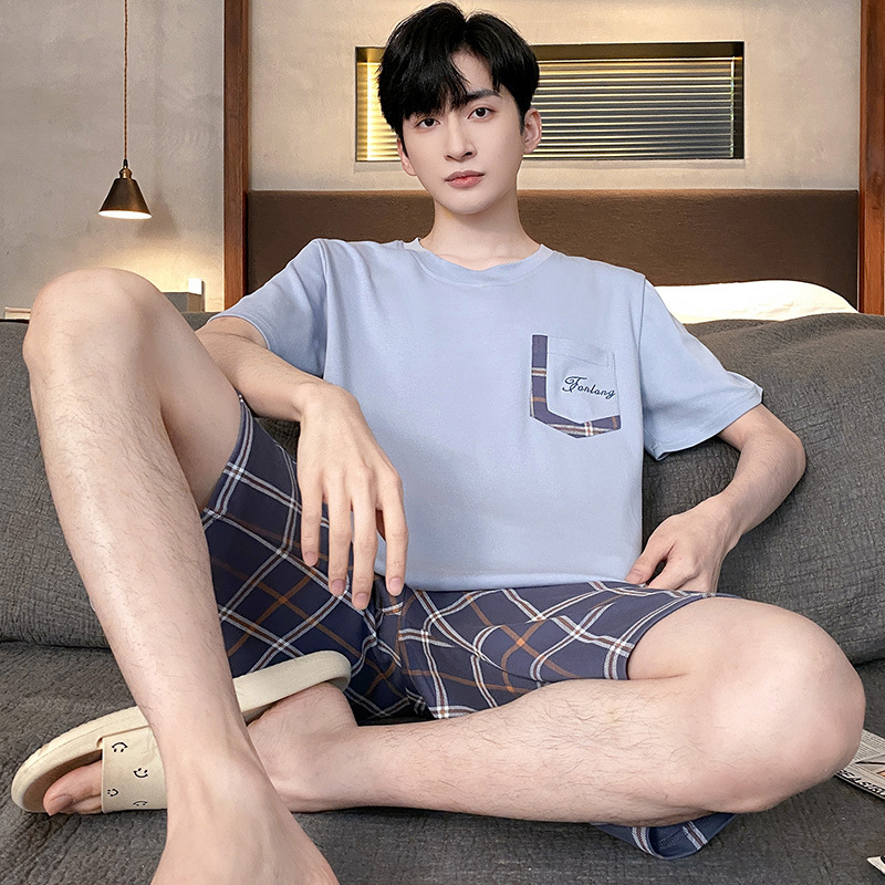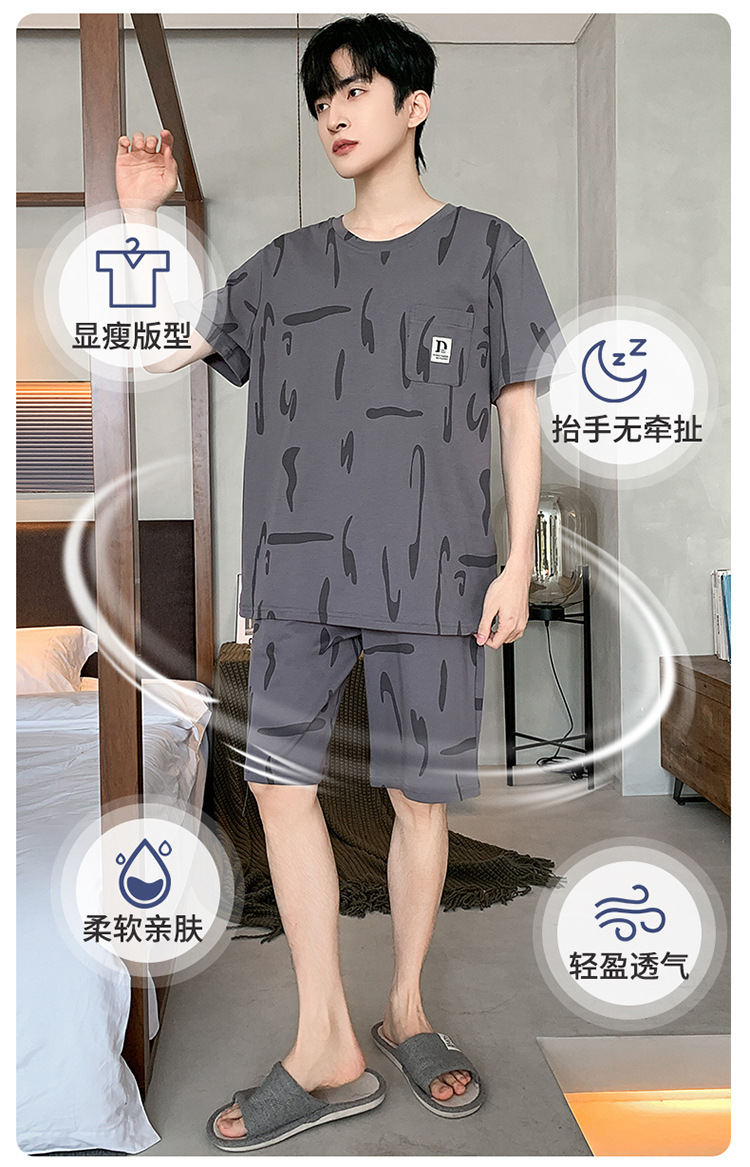 2024 새로운 잠옷 남성용 여름 반소매 코튼 캐주얼 홈웨어는 플러스 사이즈 남성용 청소년 잠옷 밖에서 입을 수 있습니다.스토어 가기