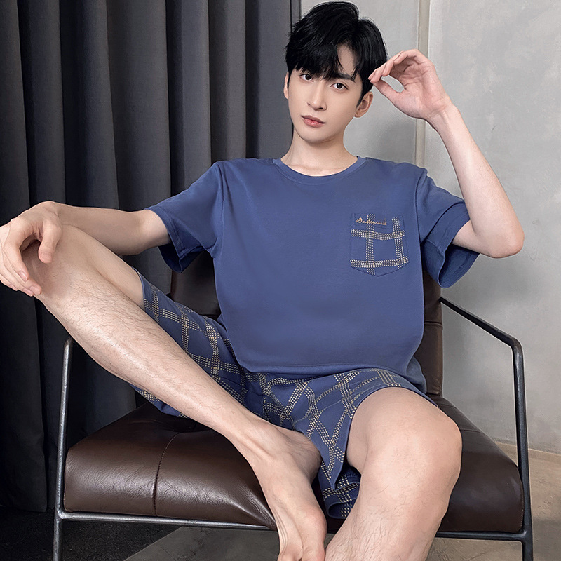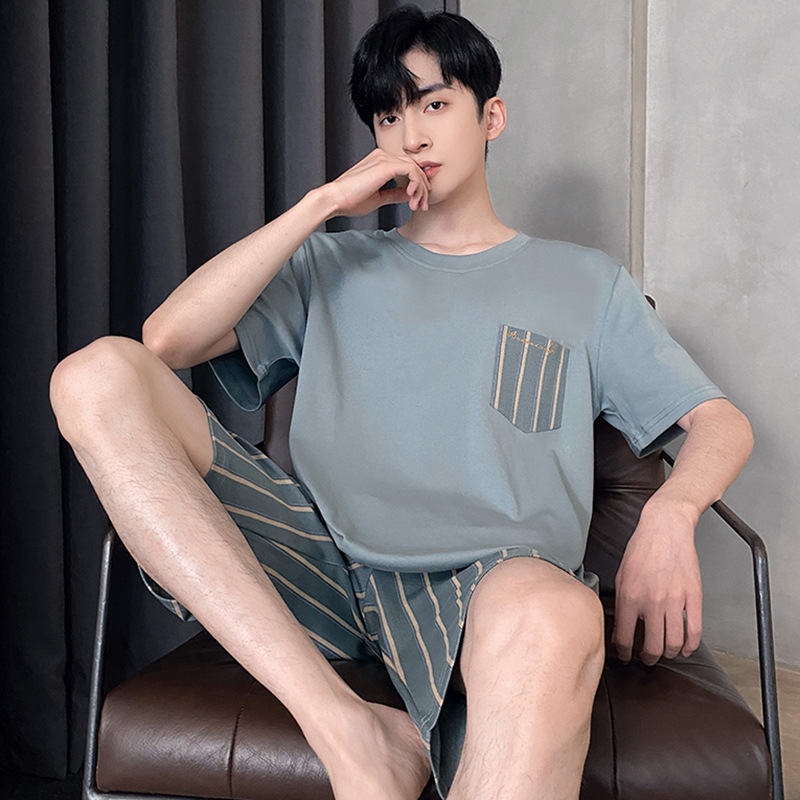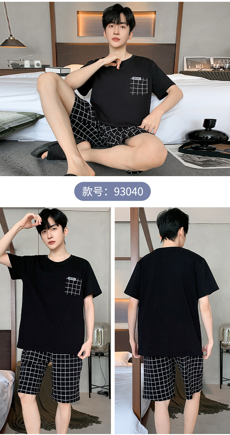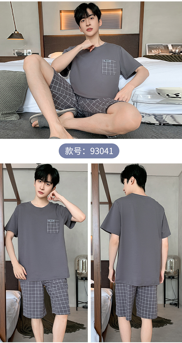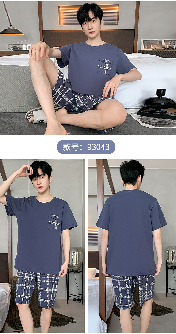 2024 새로운 잠옷 남성용 여름 반소매 코튼 캐주얼 홈웨어는 플러스 사이즈 남성용 청소년 잠옷 밖에서 입을 수 있습니다.스토어 가기