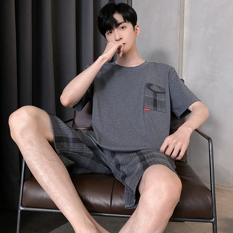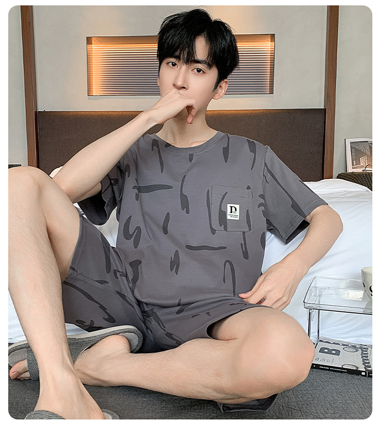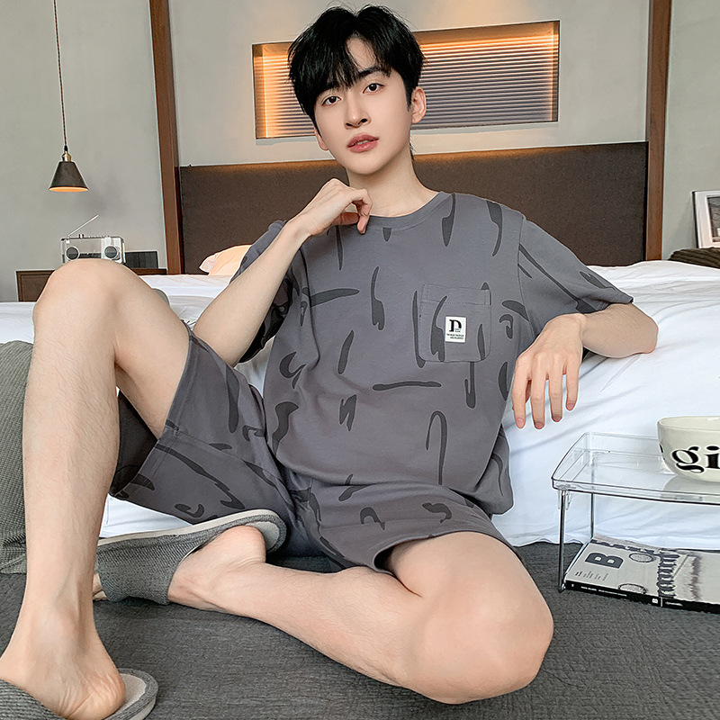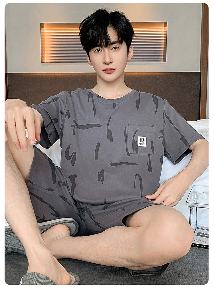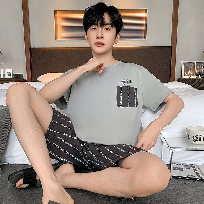 2024 새로운 잠옷 남성용 여름 반소매 코튼 캐주얼 홈웨어는 플러스 사이즈 남성용 청소년 잠옷 밖에서 입을 수 있습니다.