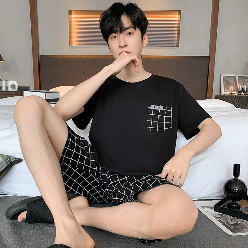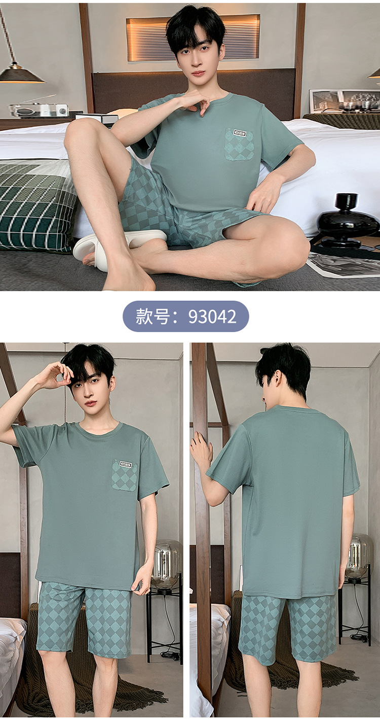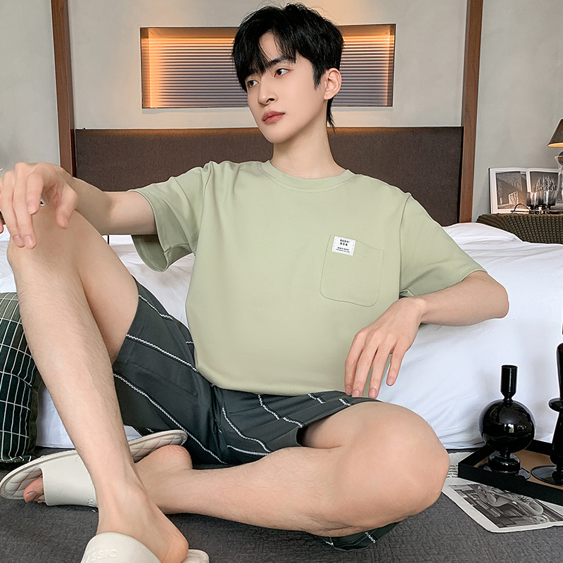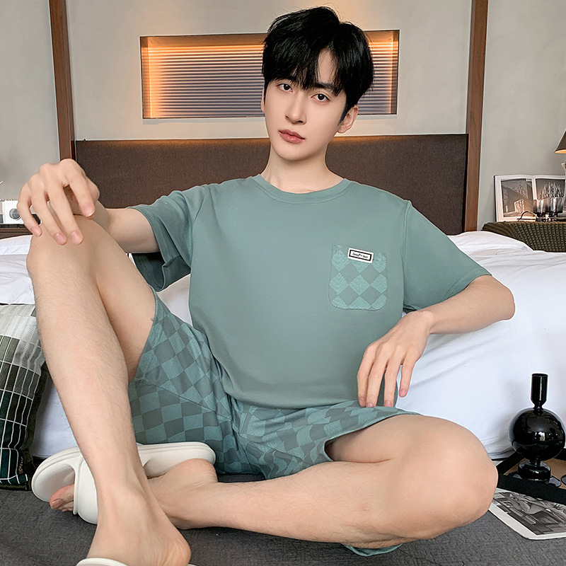 2024 새로운 잠옷 남성용 여름 반소매 코튼 캐주얼 홈웨어는 플러스 사이즈 남성용 청소년 잠옷 밖에서 입을 수 있습니다.