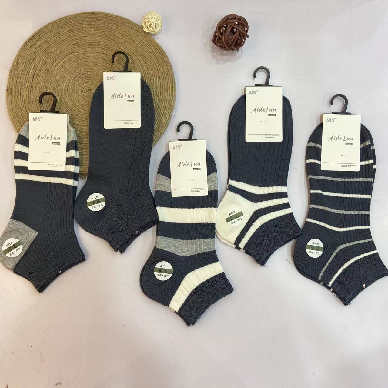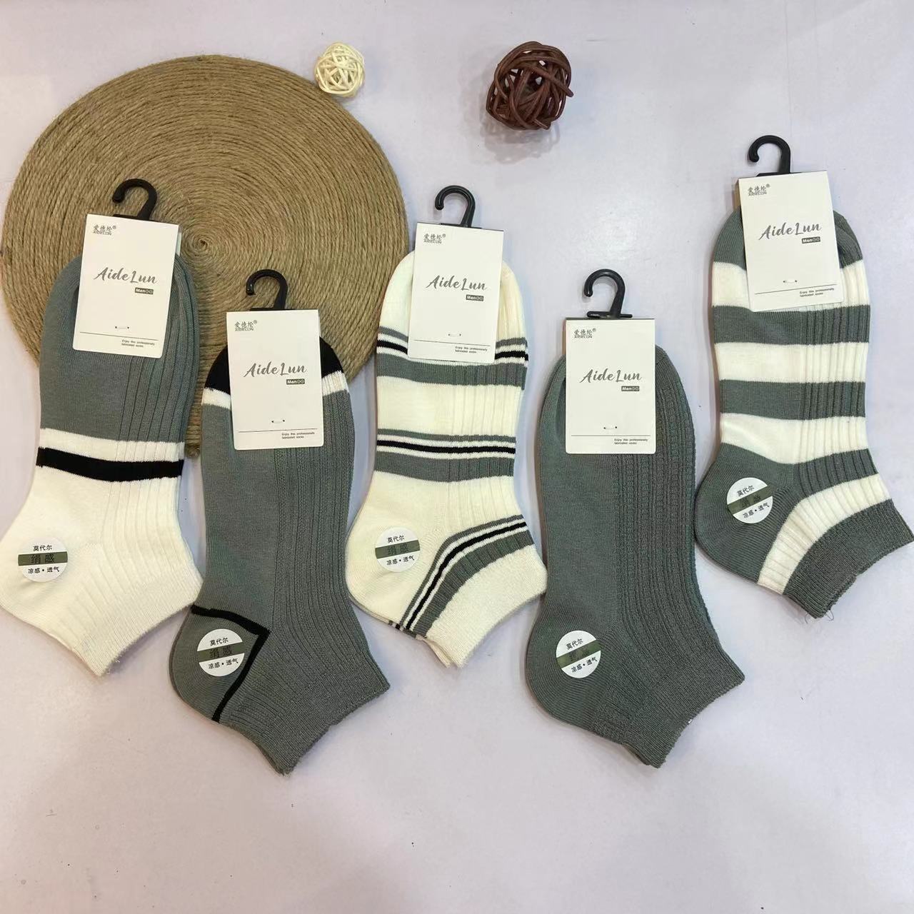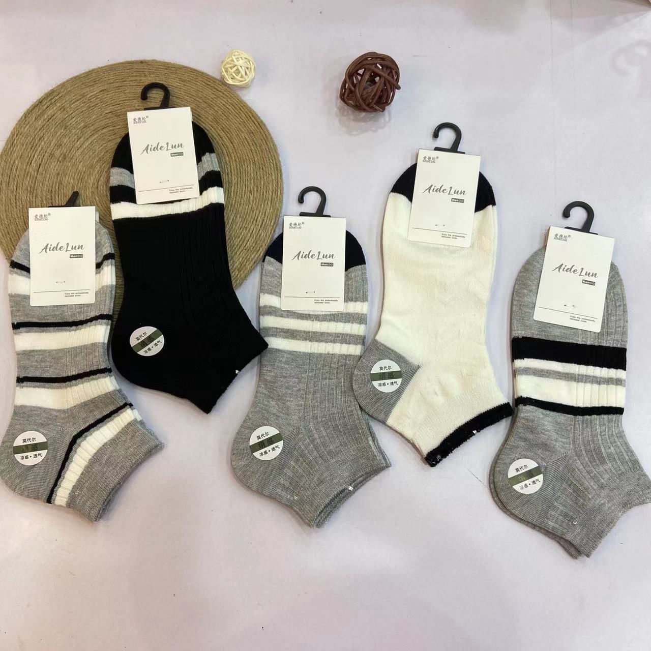 양말 남자 사계절 짧은 로우 컷 양말 더블 바늘 공예 스트라이프 간단한 올 매치 빗질 코튼 남자의 로우 컷 양말스토어 가기
