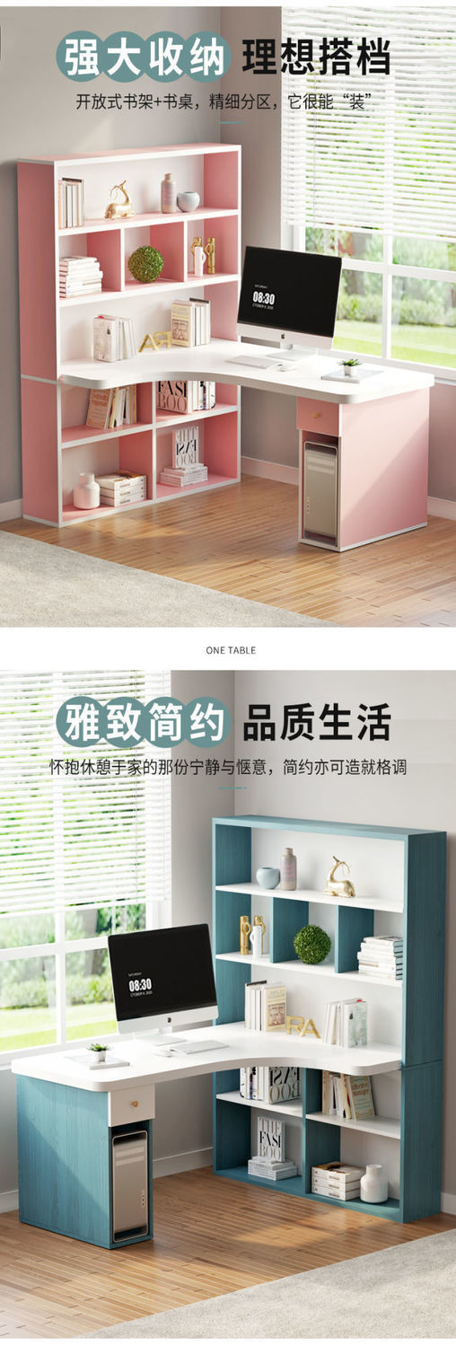 코너 데스크톱 컴퓨터 책상 단단한 나무 보드 학생 책상 책장 침실 간단한 통합 조합 코너 책상