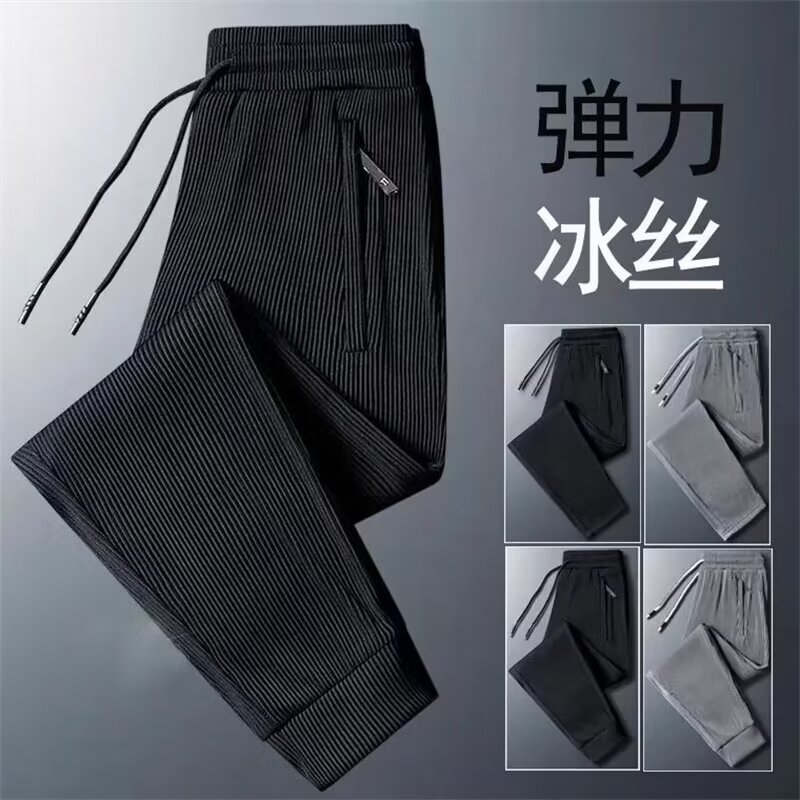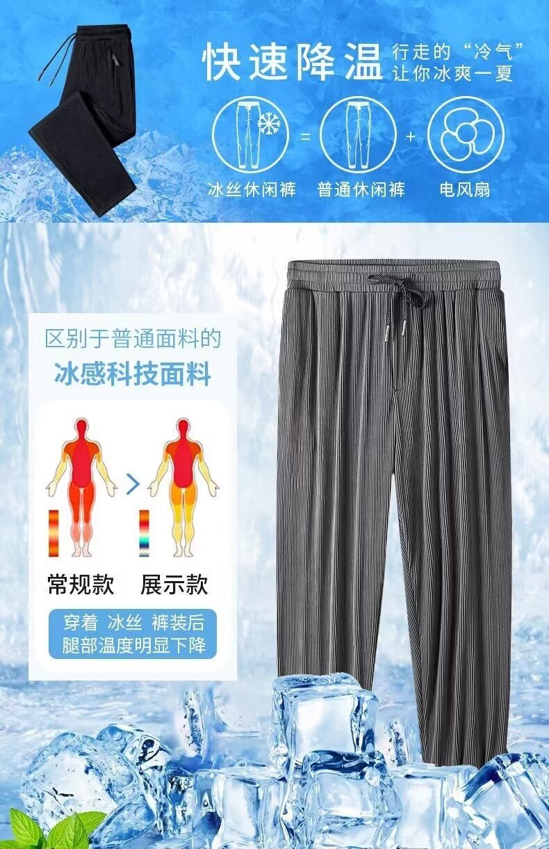 플러스 사이즈 여름 통기성 아이스 실크 팬츠 남성용 느슨한 스트레이트 플랫 퀵 드라이 팬츠 스트레칭 발목 묶인 스포츠 캐주얼 팬츠 남성스토어 가기