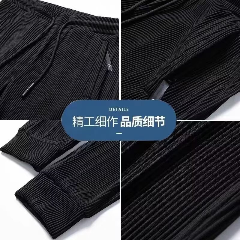 플러스 사이즈 여름 통기성 아이스 실크 팬츠 남성용 느슨한 스트레이트 플랫 퀵 드라이 팬츠 스트레칭 발목 묶인 스포츠 캐주얼 팬츠 남성