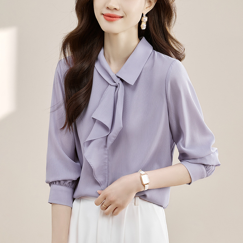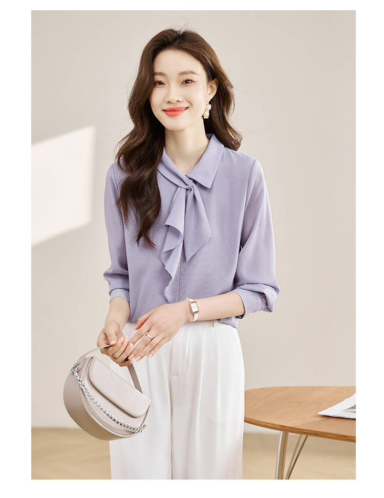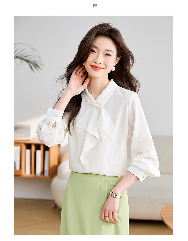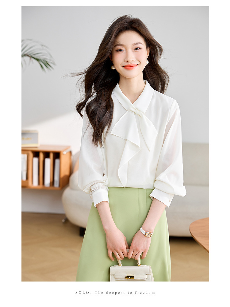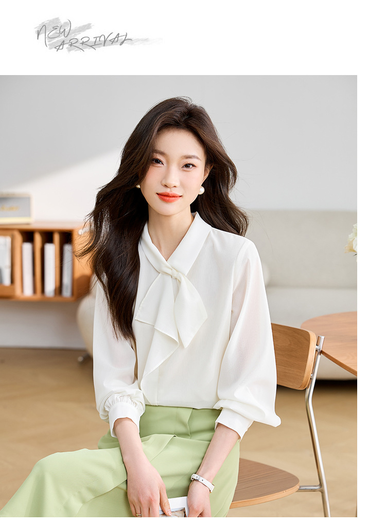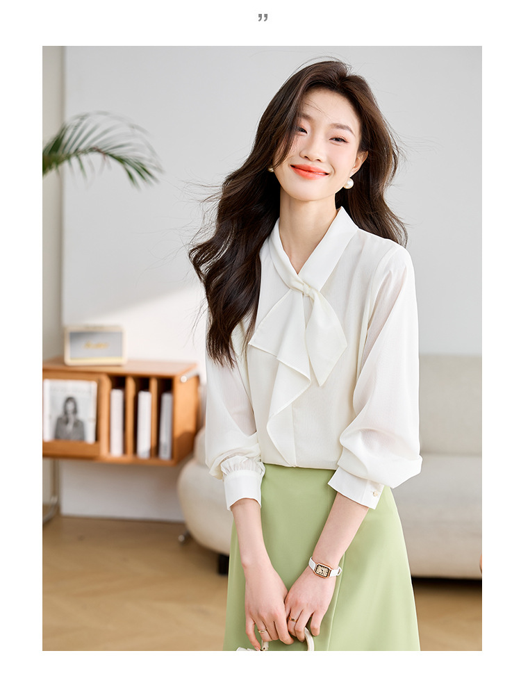 안감이 있는 2025 봄 신상 리본 장식 긴팔 셔츠, 여성용 고급스럽고 독특한 스타일의 리본 탑스토어 가기