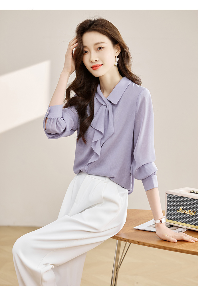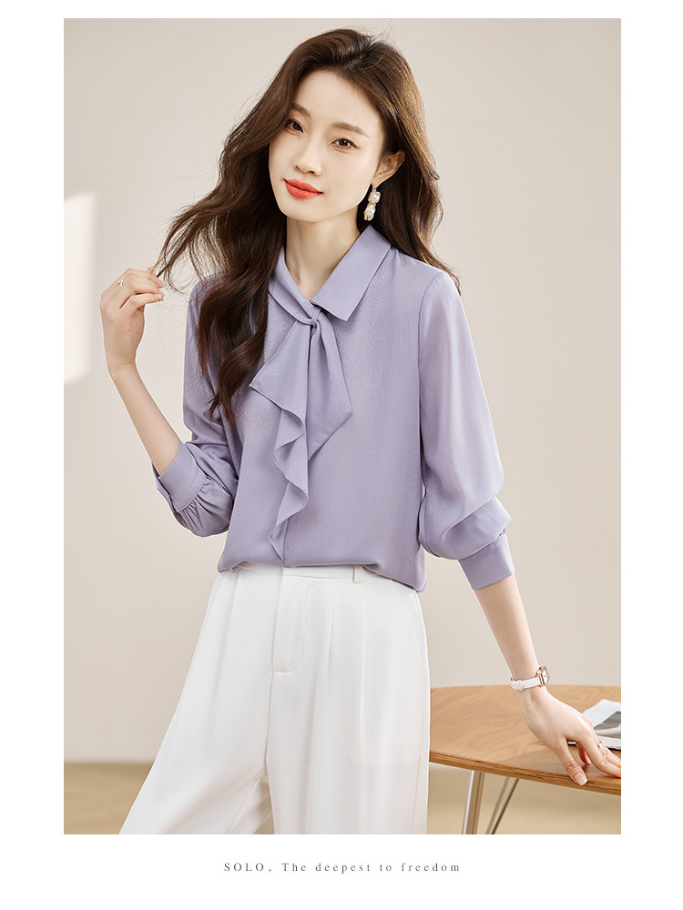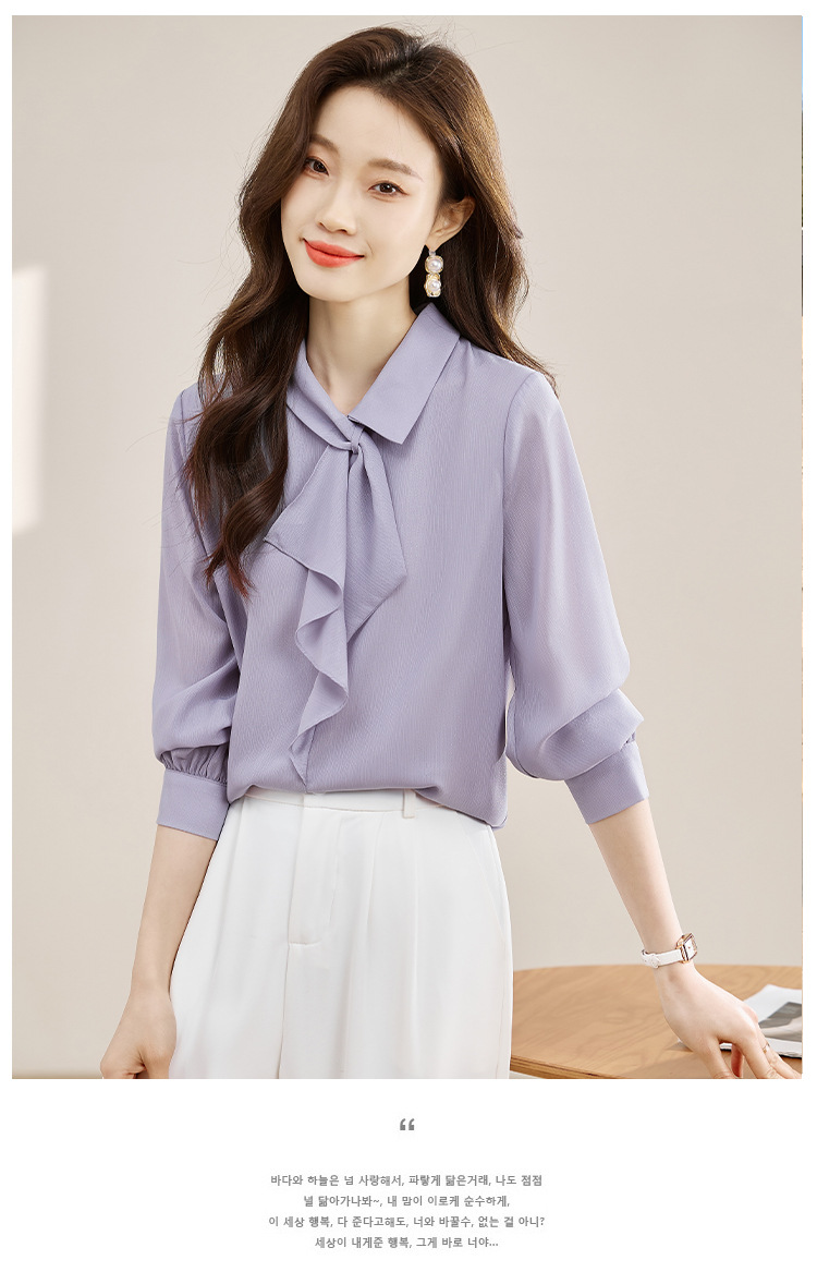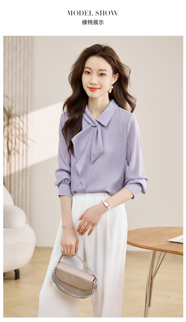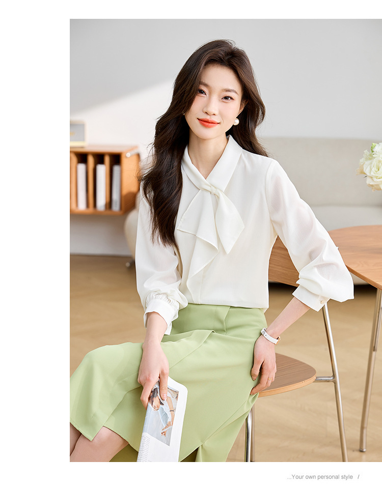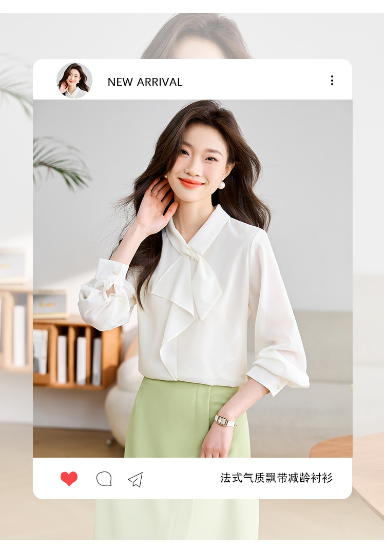 안감이 있는 2025 봄 신상 리본 장식 긴팔 셔츠, 여성용 고급스럽고 독특한 스타일의 리본 탑스토어 가기