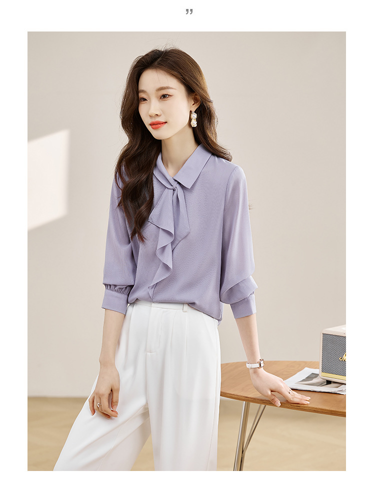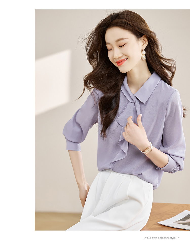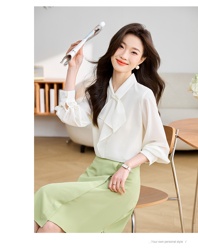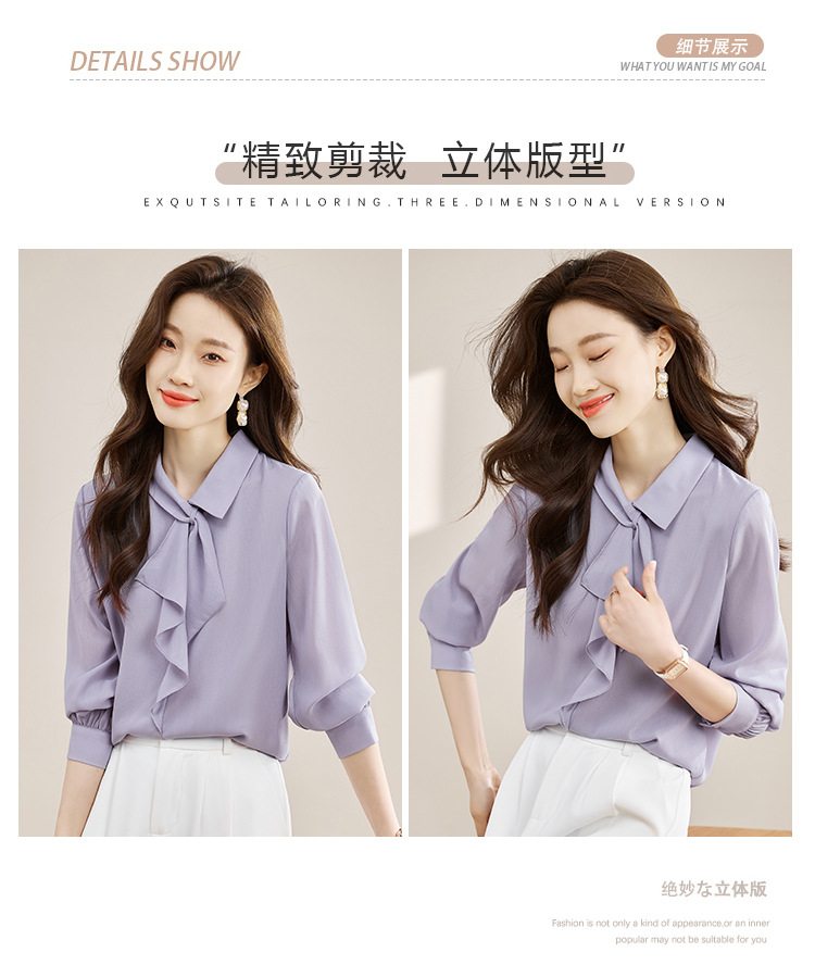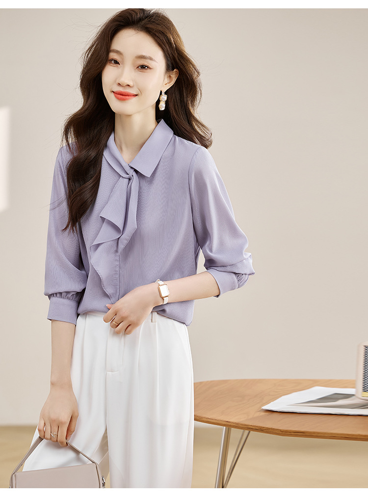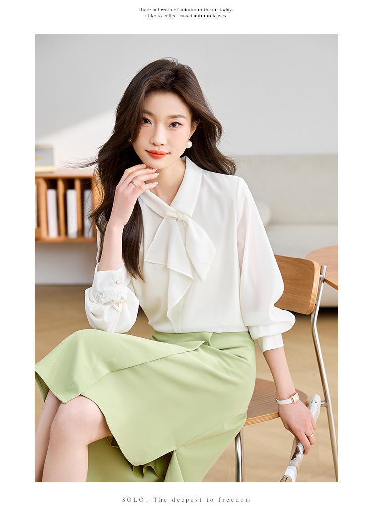 안감이 있는 2025 봄 신상 리본 장식 긴팔 셔츠, 여성용 고급스럽고 독특한 스타일의 리본 탑스토어 가기