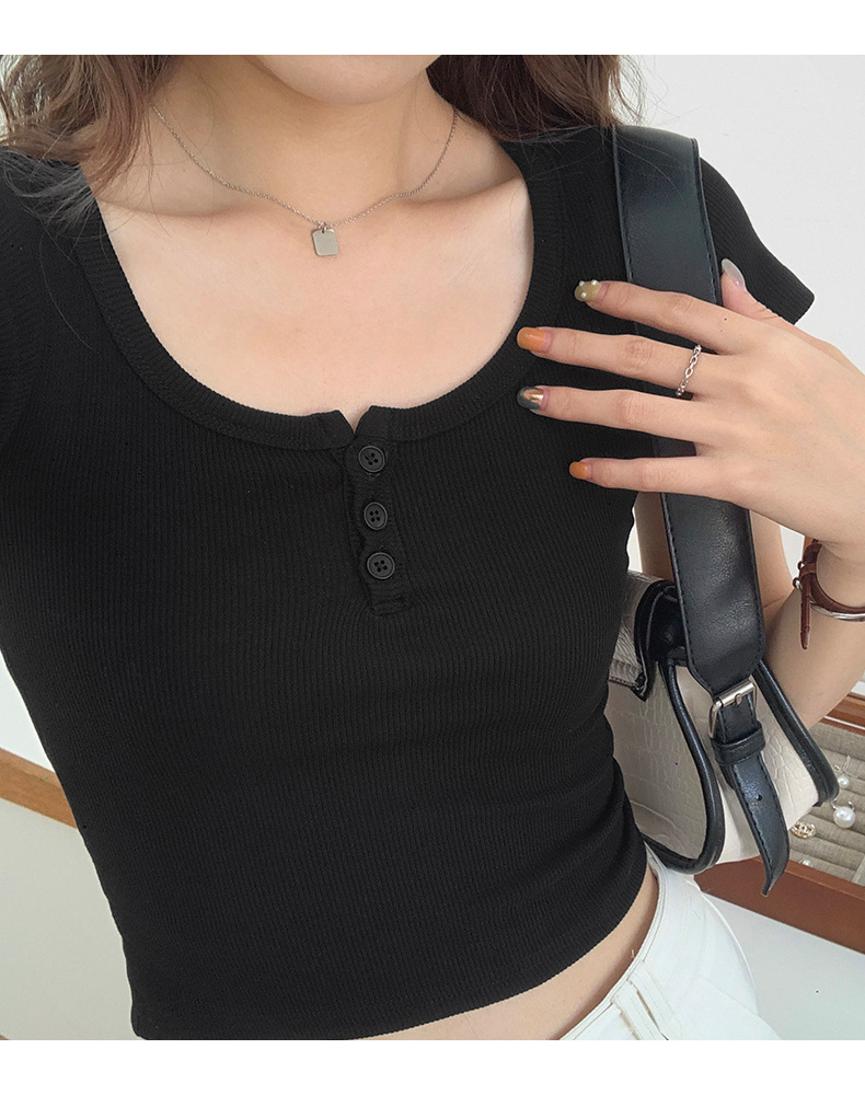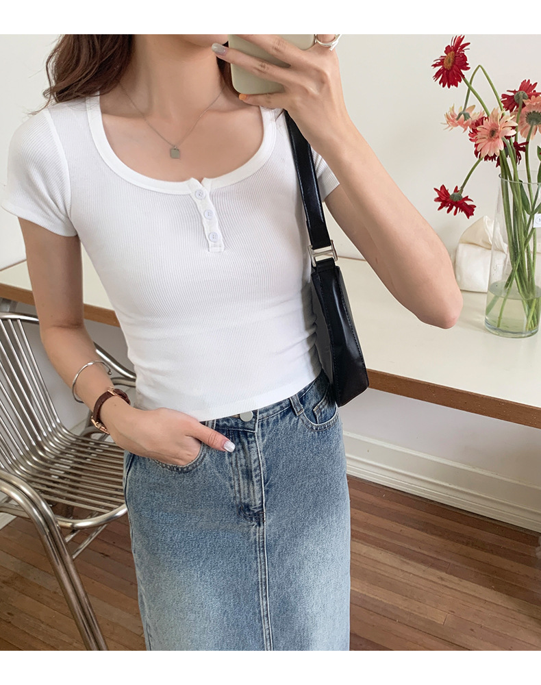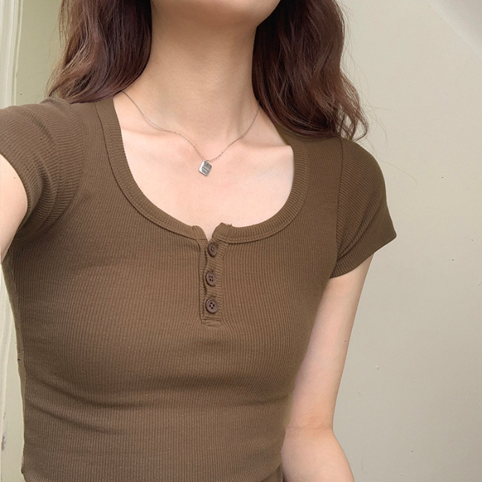 2024 여름 새로운 스타일의 어깨 반팔 티셔츠 여성 틈새 디자인 감각 핫 소녀 슬림 슬리밍 셔츠 짧은 탑스토어 가기