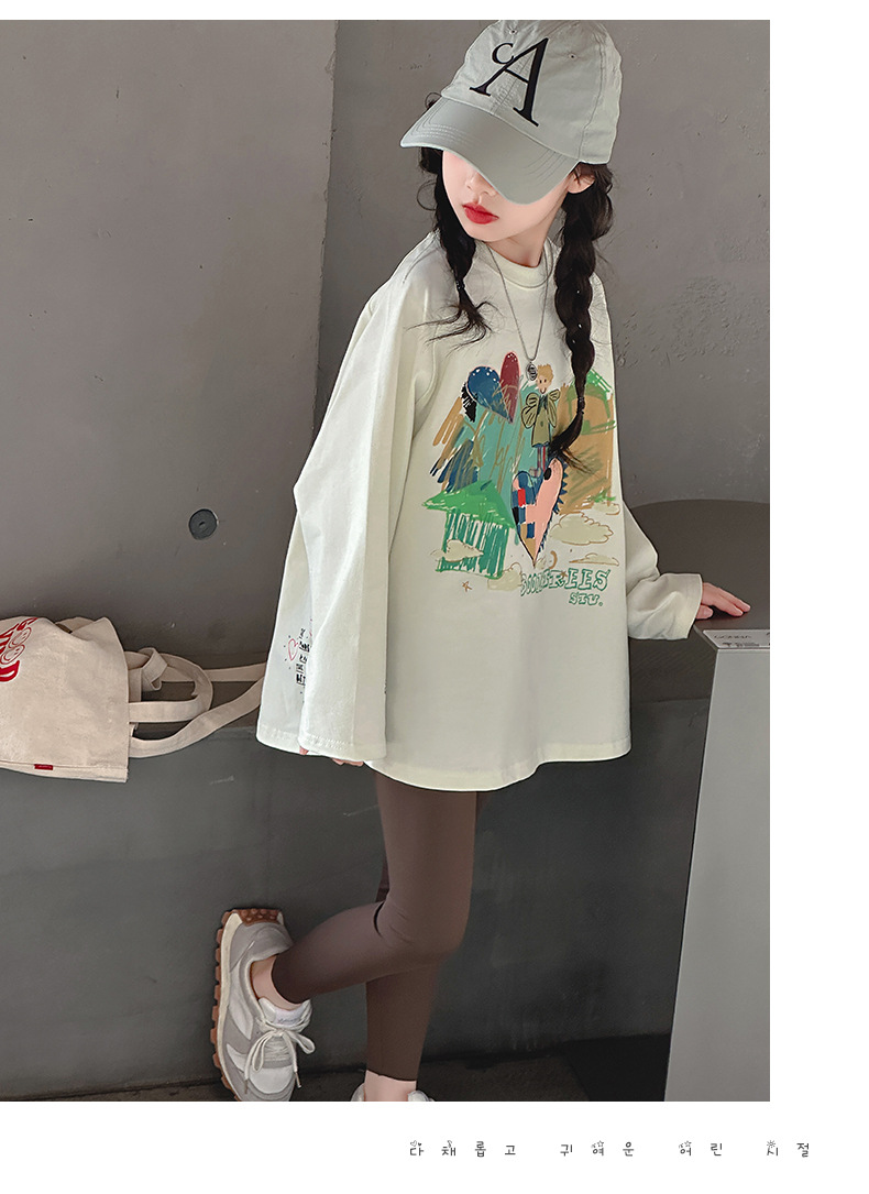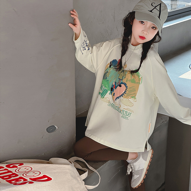아동 의류 소녀 봄 순수 코튼 탑 2024 유행 어린이 바닥 셔츠 소녀 가을 의류 티셔츠 긴 소매 남성스토어 가기