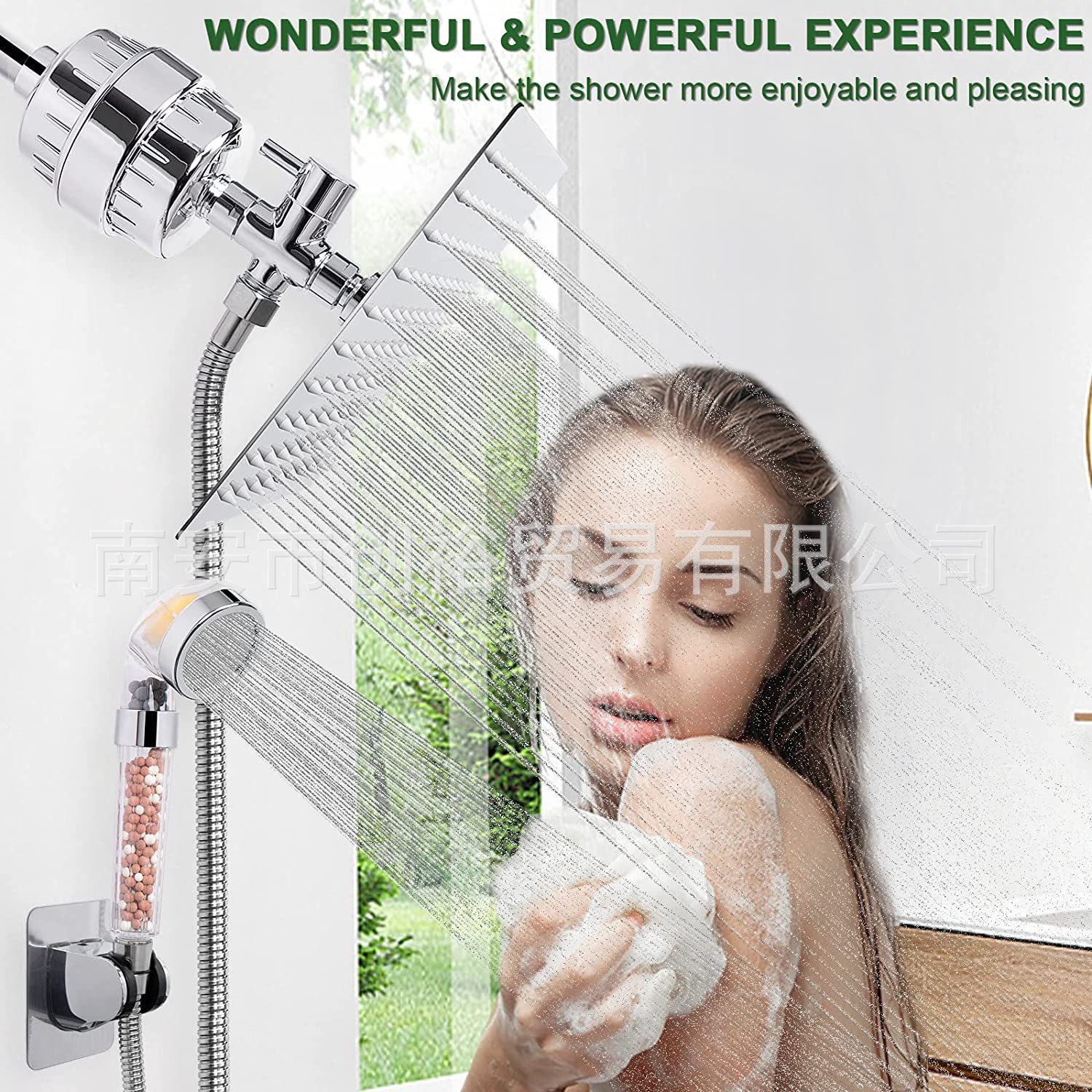 전기 도금 우아한 블랙 필터 음이온 정수 스테인레스 스틸 탑 스프레이 가압 핸드 헬드 3 단 가정용 샤워 세트 도매