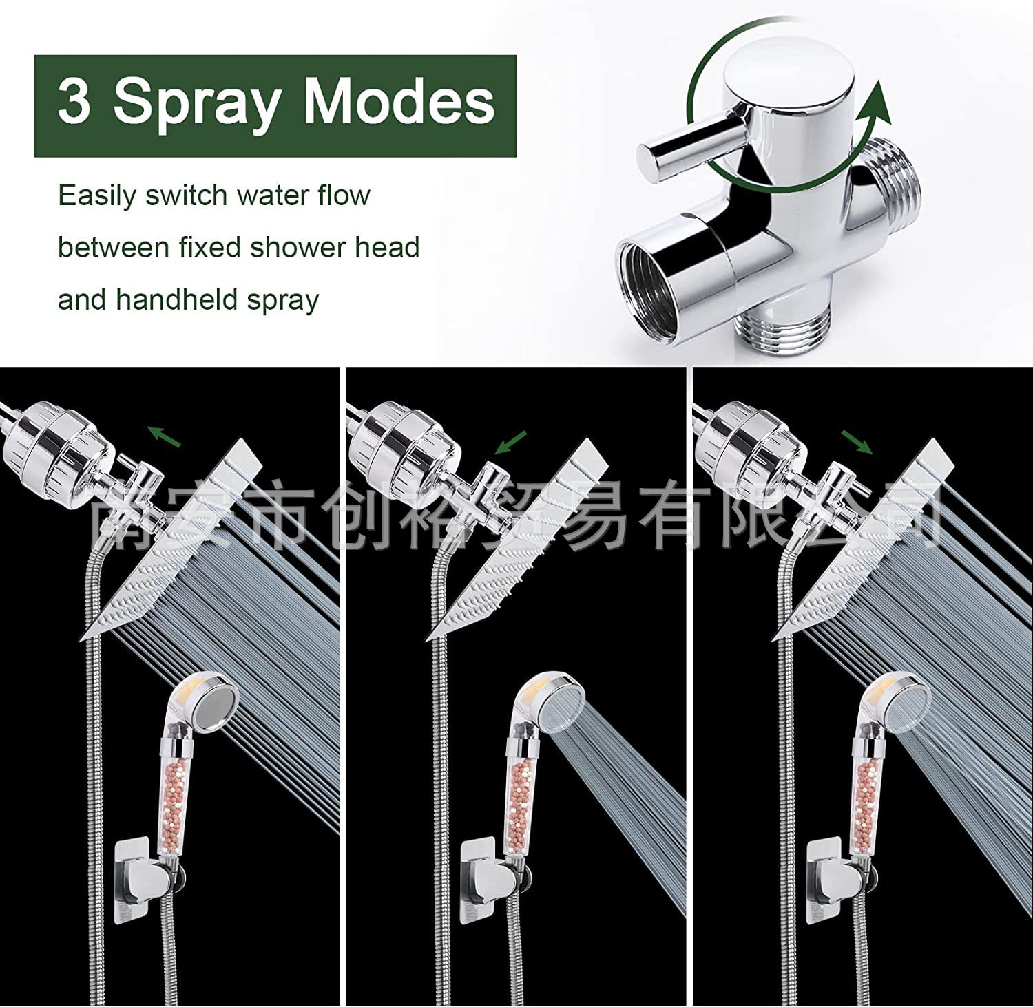 전기 도금 우아한 블랙 필터 음이온 정수 스테인레스 스틸 탑 스프레이 가압 핸드 헬드 3 단 가정용 샤워 세트 도매스토어 가기