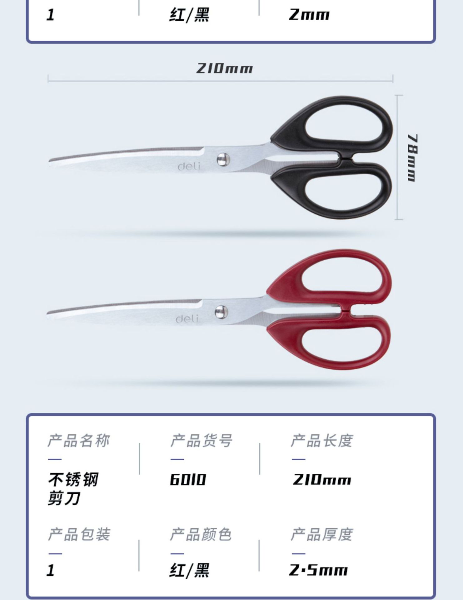 델리 금속 가위 사무실 종이 가위 스테인레스 스틸 가위 사무용품 학생 수제 편리한 다기능