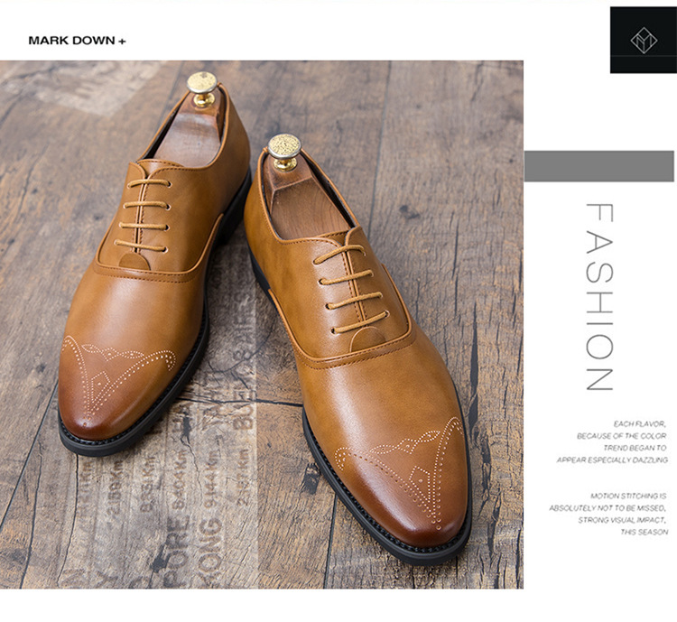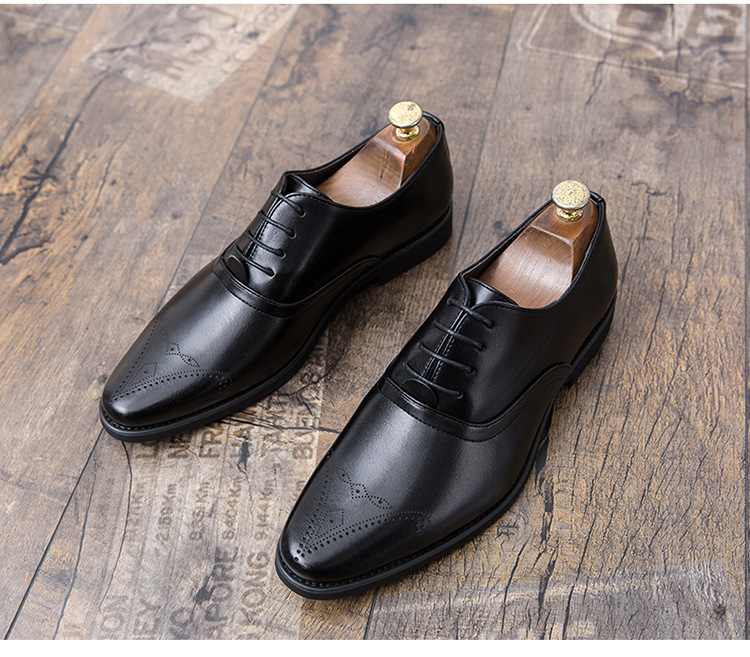 뾰족한 가죽 신발 남성 영국 복고풍 비즈니스 캐주얼 남성 신발 한국 유행 공식 착용 사무실 작업 높이 증가 웨딩 신발