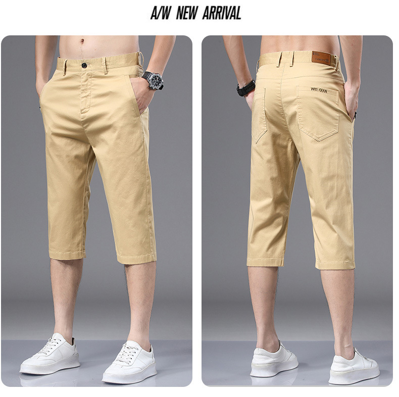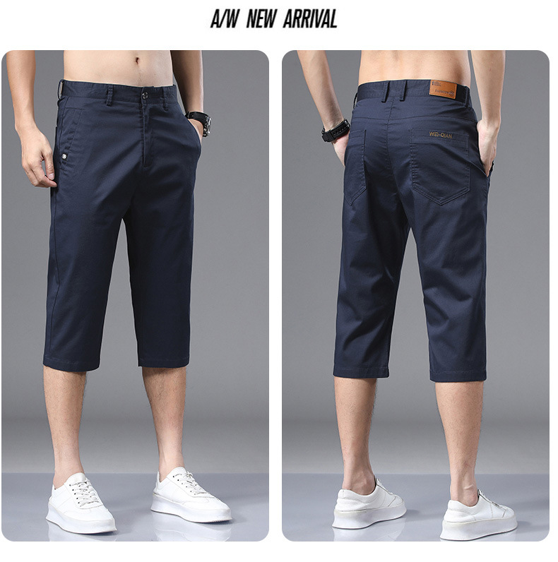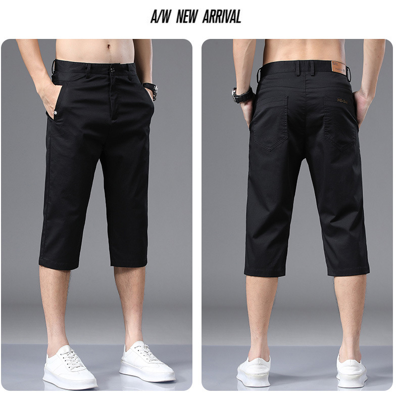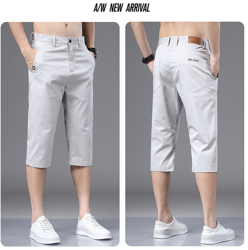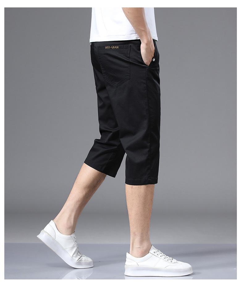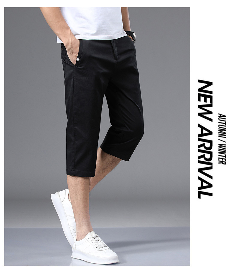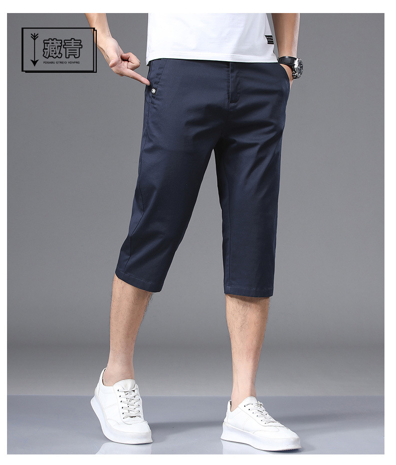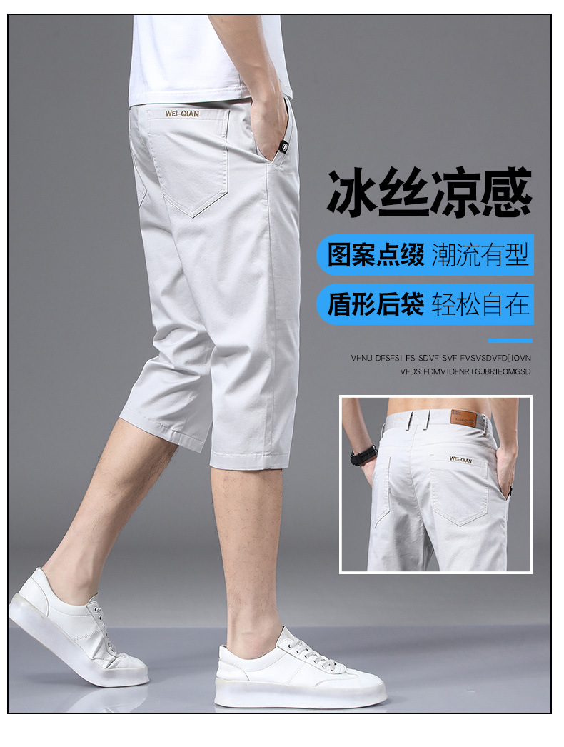 자른 캐주얼 바지 남자 2024 여름 얇은 스트레이트 느슨한 남자 바지 트렌디 한 스트레치 스포츠 무릎 위 반바지스토어 가기