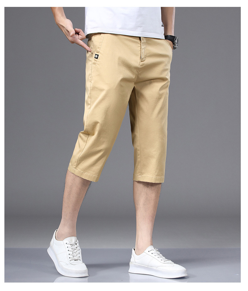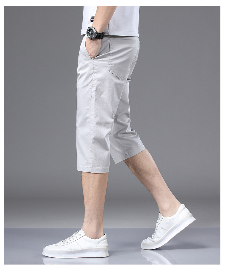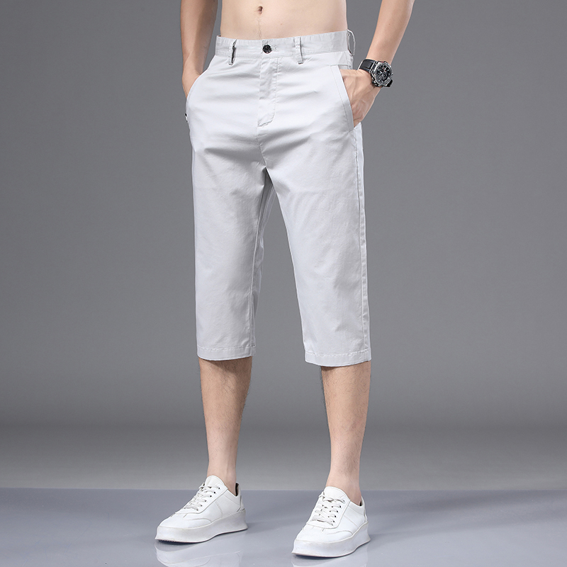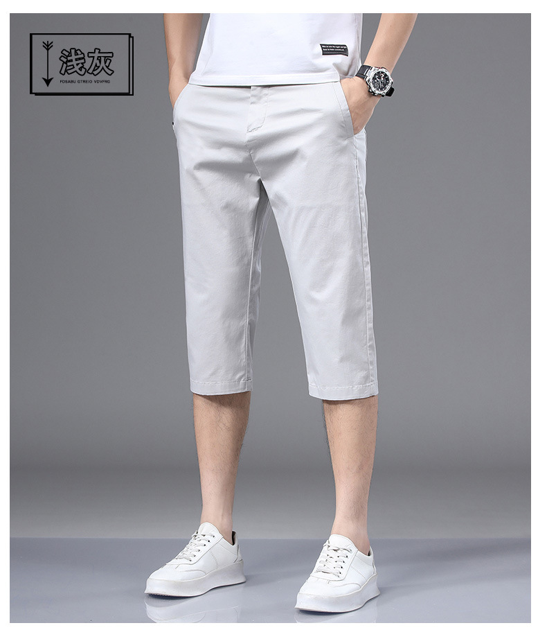 자른 캐주얼 바지 남자 2024 여름 얇은 스트레이트 느슨한 남자 바지 트렌디 한 스트레치 스포츠 무릎 위 반바지