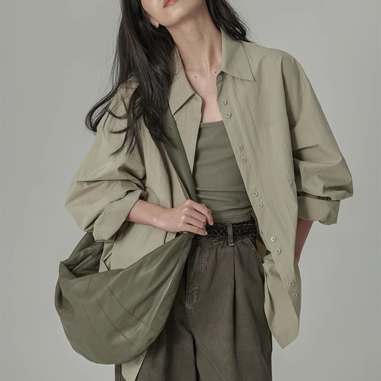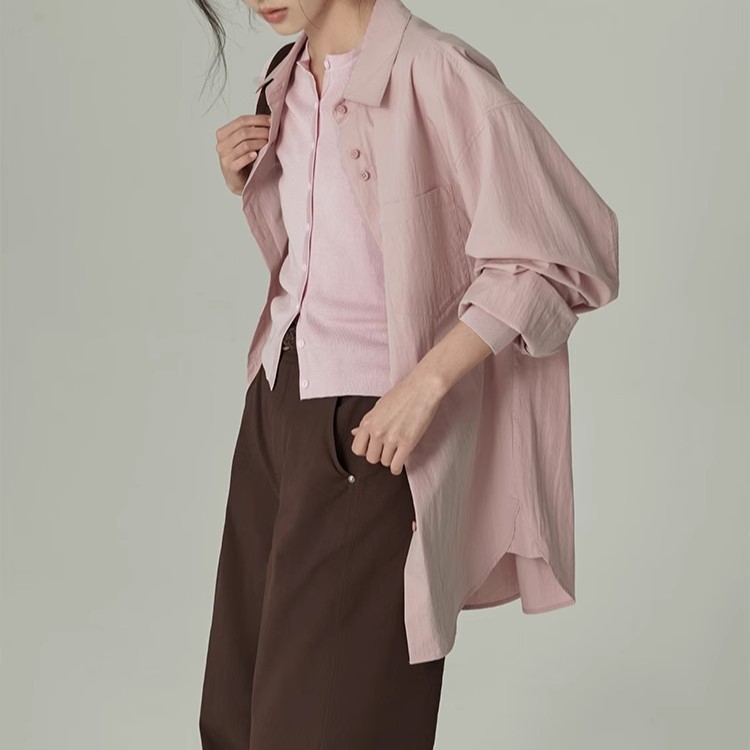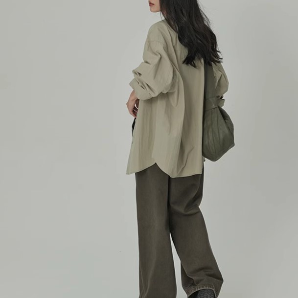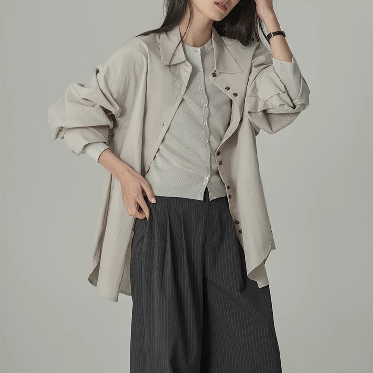 이른 봄을위한 간단한 게으른 올 매치 텍스처 프로필 단색 셔츠 코트스토어 가기