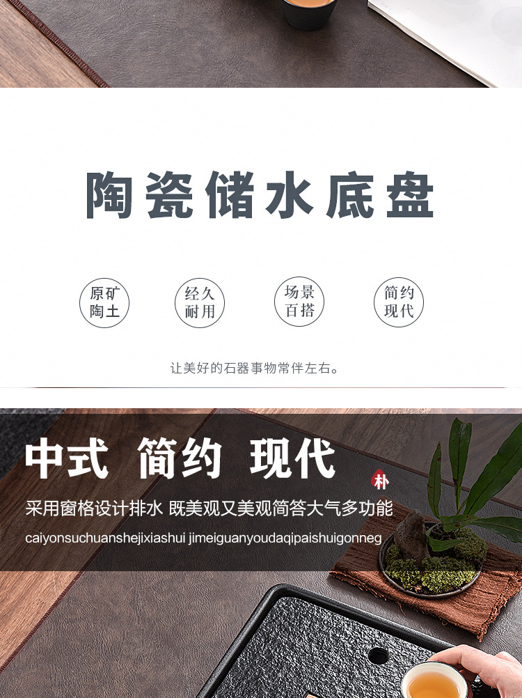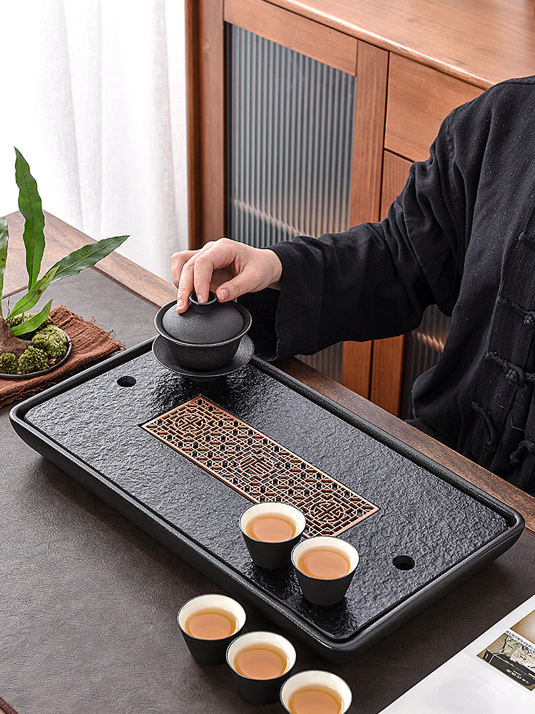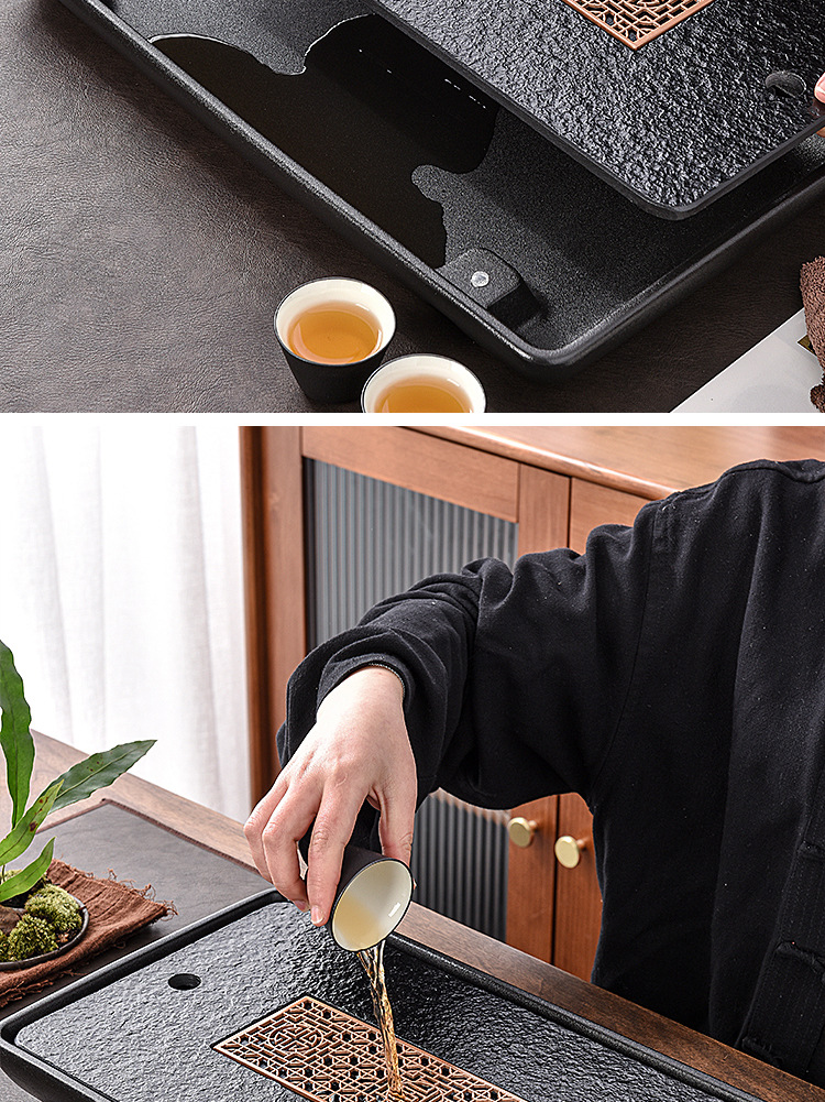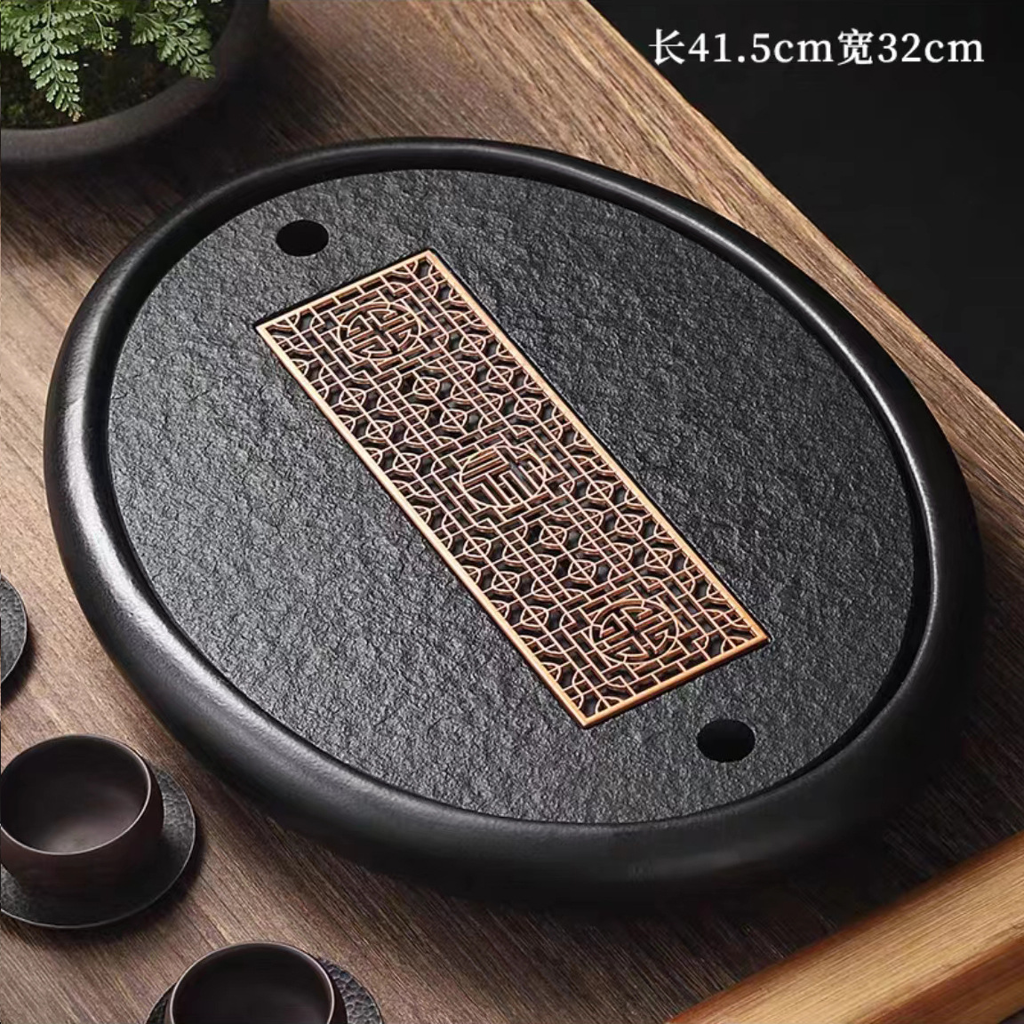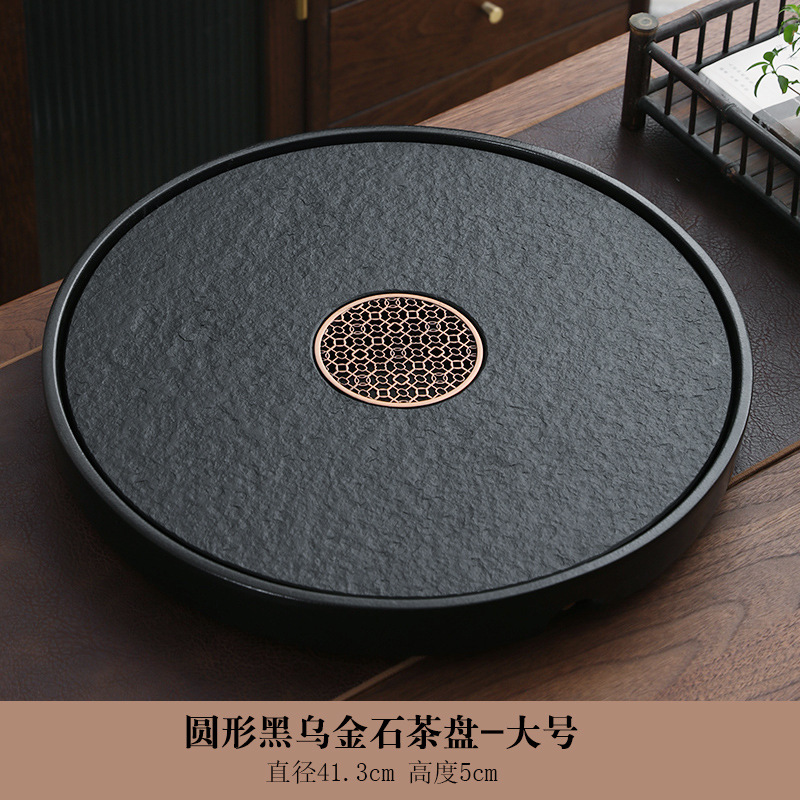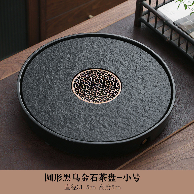 흑금석 티 테이블, 원형 티 트레이, 세라믹, 모던하고 심플한 가정용 소형 물 저장 건식 양조 테이블, 배수석 트레이