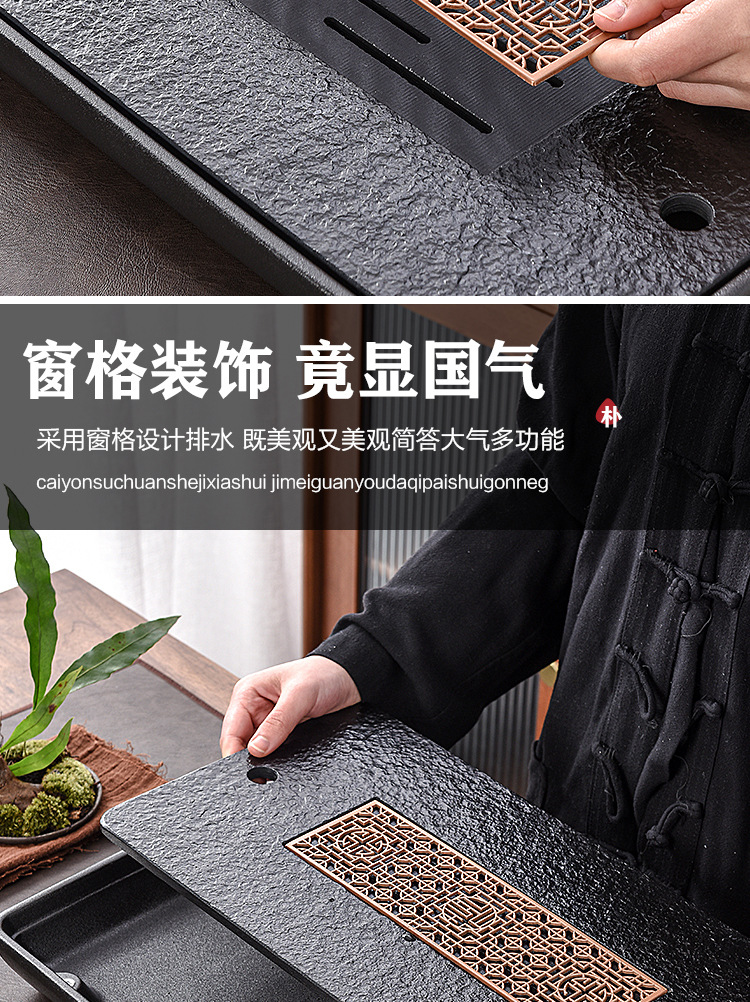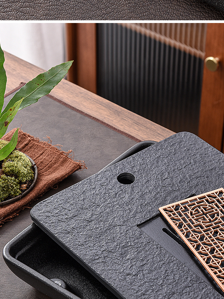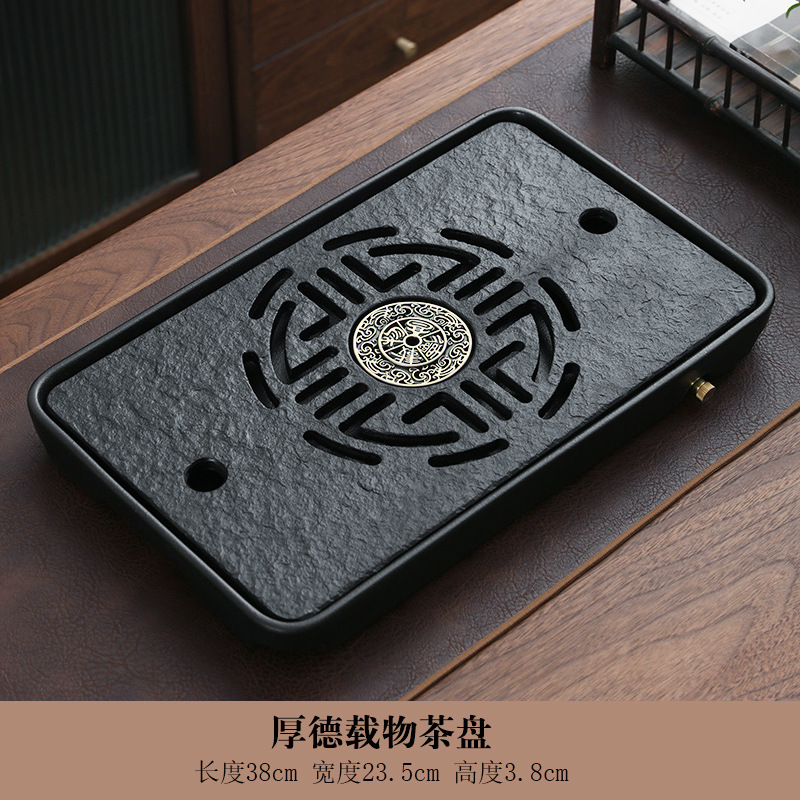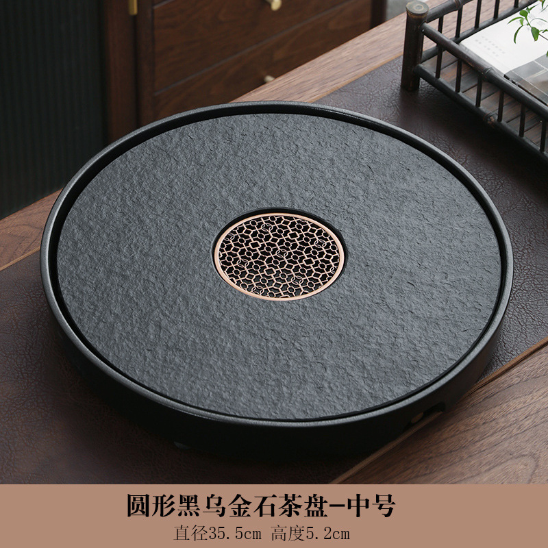 흑금석 티 테이블, 원형 티 트레이, 세라믹, 모던하고 심플한 가정용 소형 물 저장 건식 양조 테이블, 배수석 트레이스토어 가기
