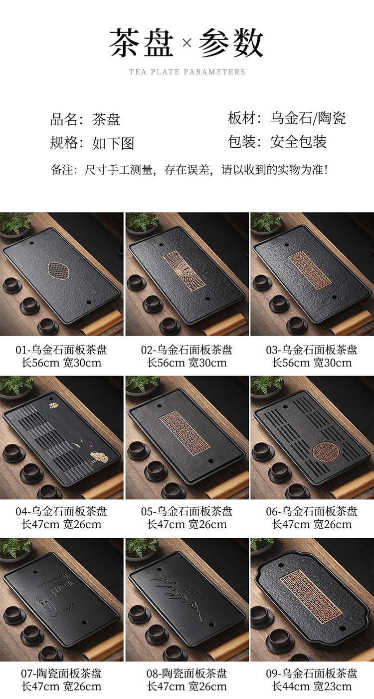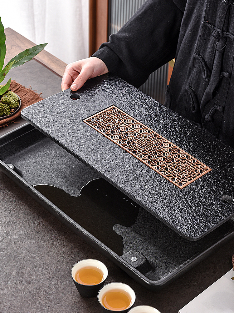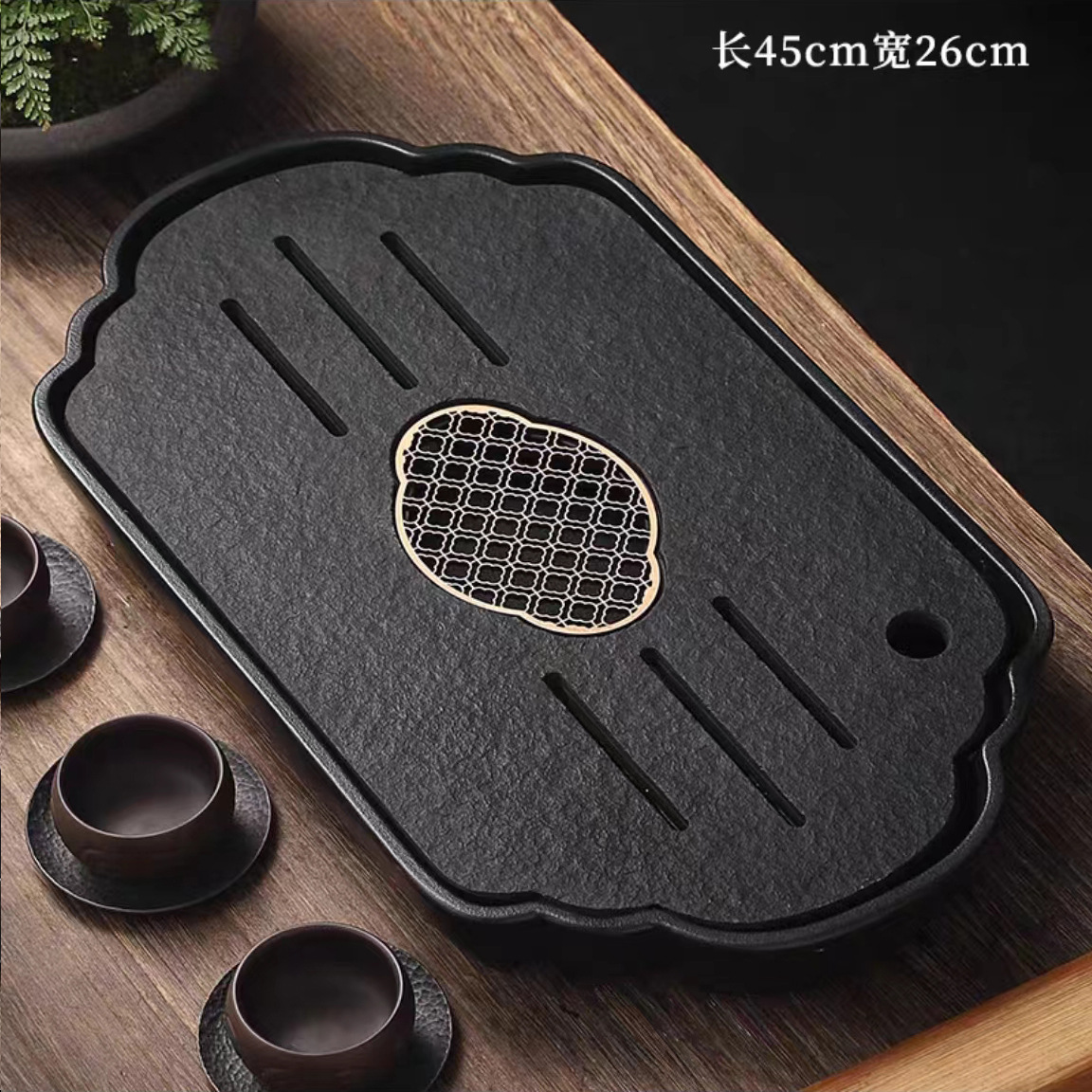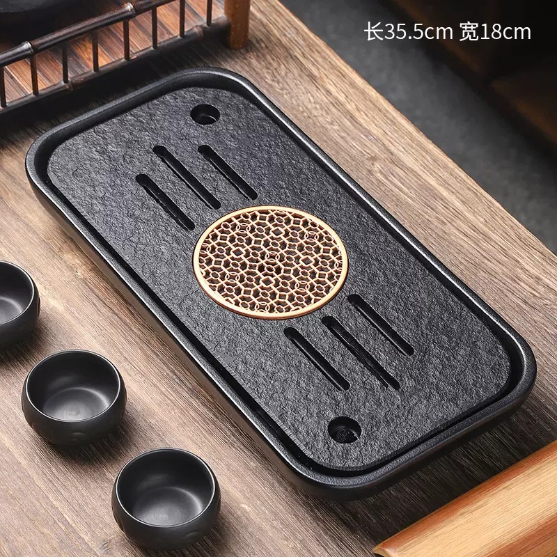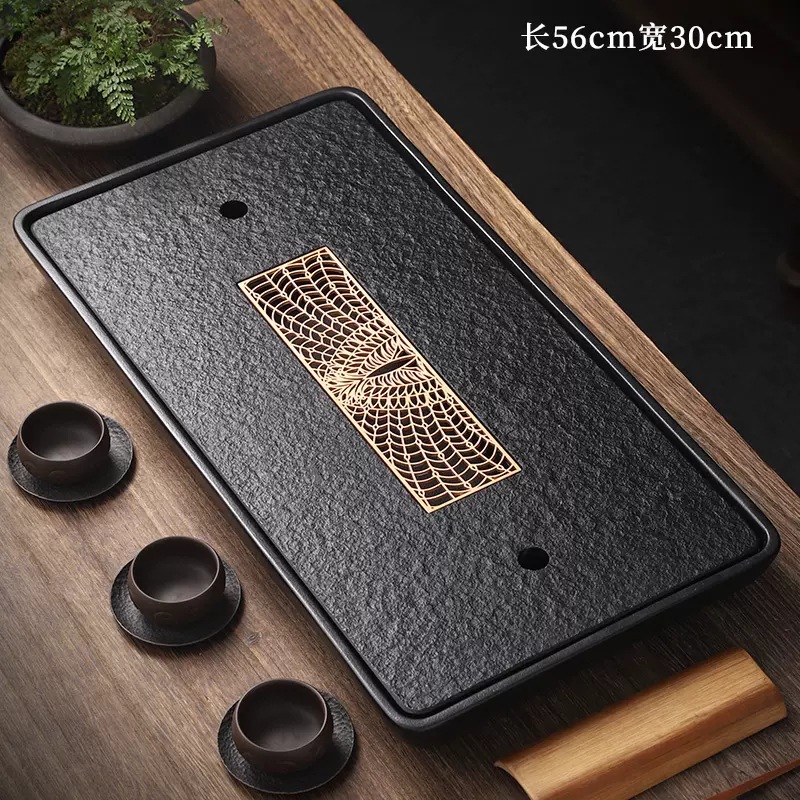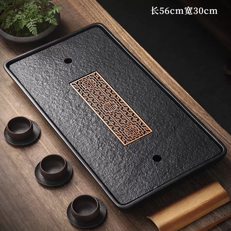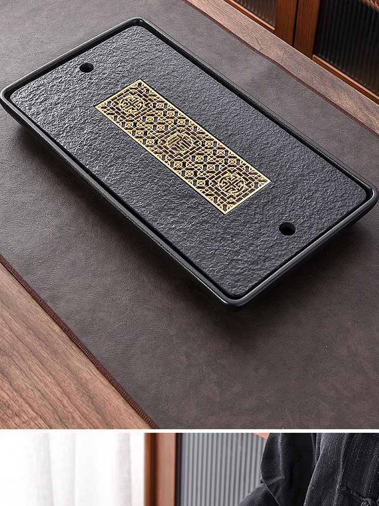 • (블랙 골드 스톤) 직사각형 세라믹 패널 물 차 트레이 47*26*5cm
