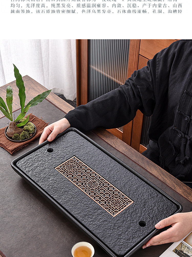 • (흑금석) 줄무늬 흑금석 작은 차 트레이 35.5*18cm