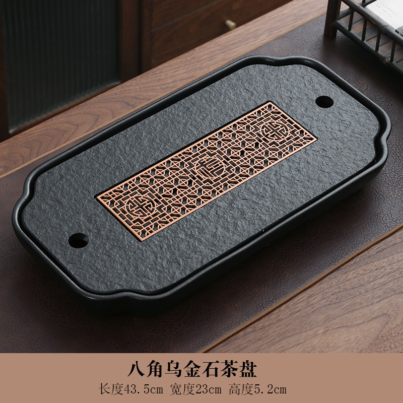 • (흑금석) 팔각형 흑금석 흑문양 차쟁반 44*23cm