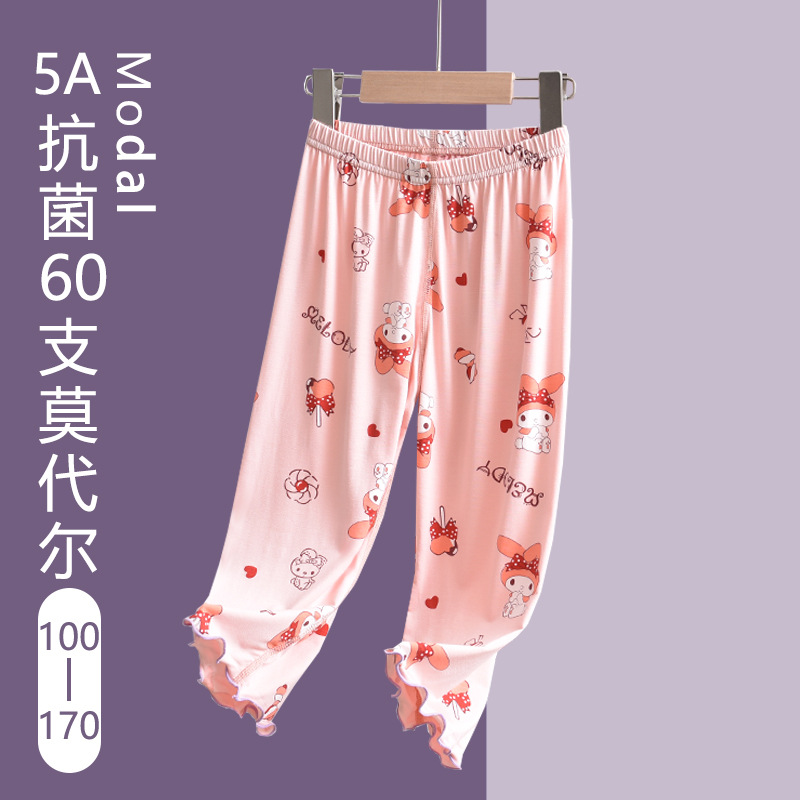 어린이 가정복 파자마 바지 모달 여름 얇은 소녀 소녀 학생 에어컨 옷 아기 자른 바지 바지