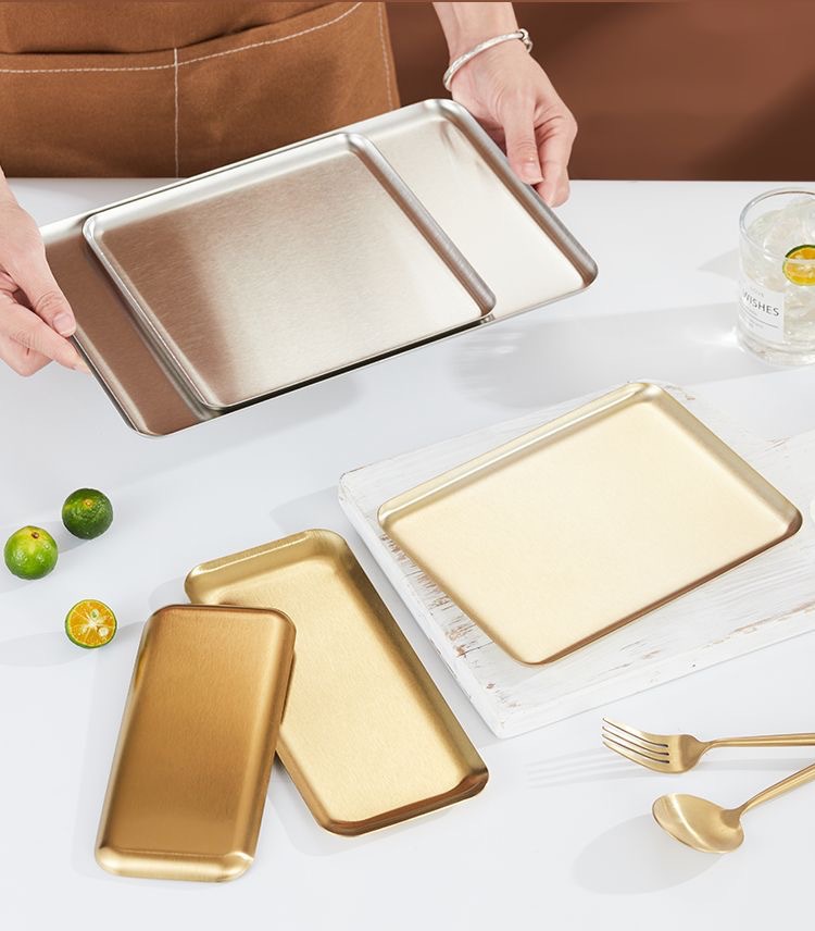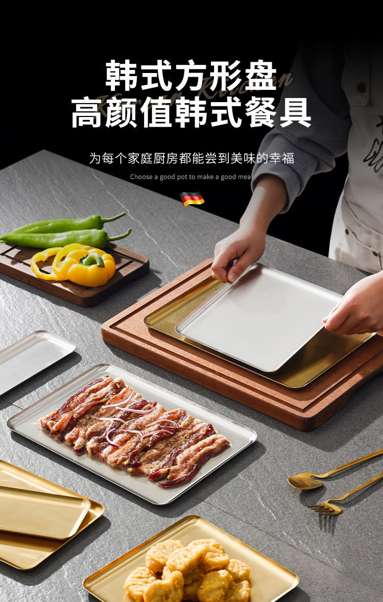 304 스테인레스 스틸 베이킹 팬 사각형 접시 한국어 바베큐 접시 접시 황금 스낵 트레이 직사각형 접시 바베큐 접시스토어 가기