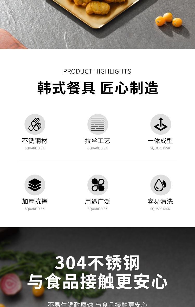 304 스테인레스 스틸 베이킹 팬 사각형 접시 한국어 바베큐 접시 접시 황금 스낵 트레이 직사각형 접시 바베큐 접시