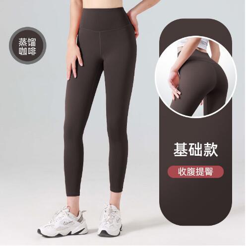 재고 누드 요가 바지 여성 복숭아 엉덩이 높은 허리 엉덩이 리프팅 스포츠 피트니스 바지 배꼽 계약 타이트한 요가 바지 여성 헤어 세대스토어 가기