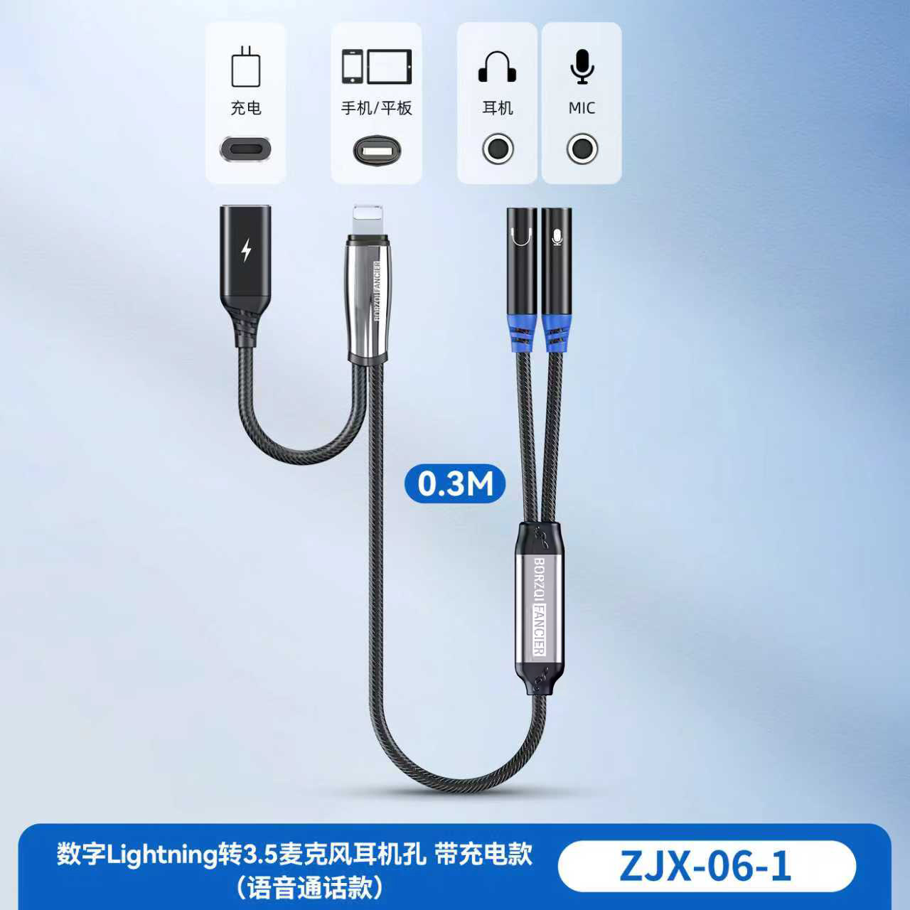 • 블랙 디지털 Lightning - 3.5 마이크 헤드폰 잭 + 충전 모델 ZJX-06-1(음성 통화 모델)