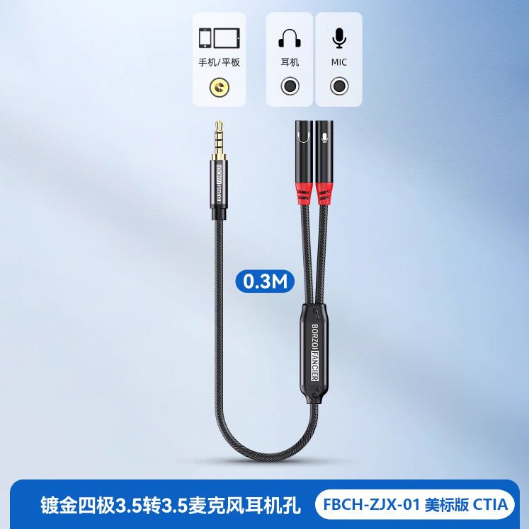 • 검정색 금도금 4극 3.5~3.5 헤드폰 잭 + 헤드폰 잭 ZJX-08 미국 표준 버전 CTIA