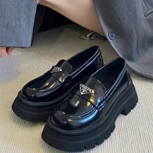 厚底小皮鞋乐福鞋女2023新款圆头小皮鞋女粗跟单鞋英伦风女鞋