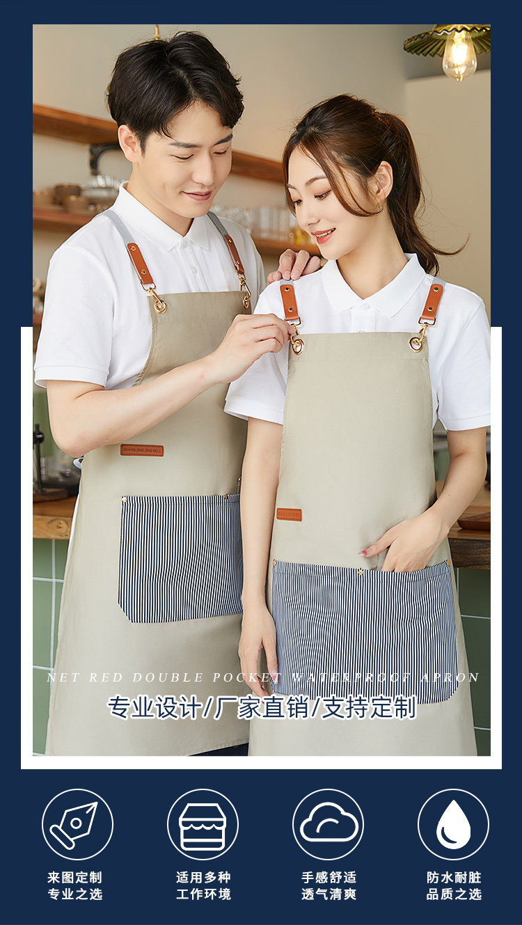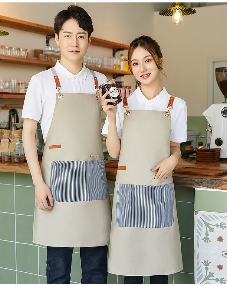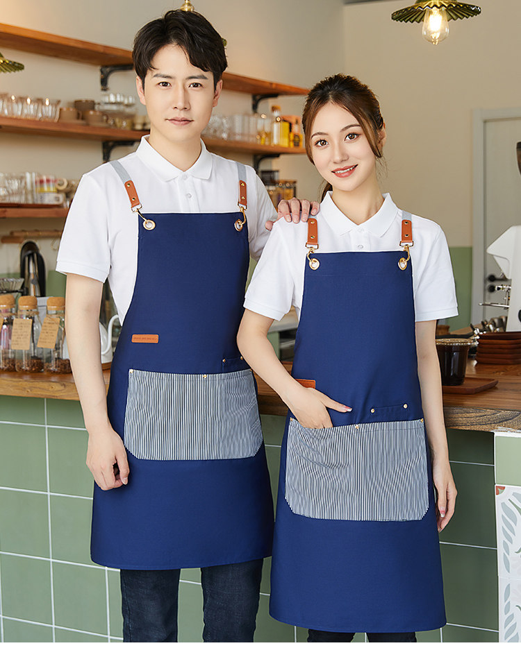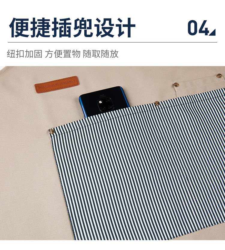 이황 공장 직접 공급 폴리 에스테르면 캔버스 앞치마 크로스 어깨 끈 큰 포켓 스트라이프 작은 배치 인쇄 로고 국경스토어 가기
