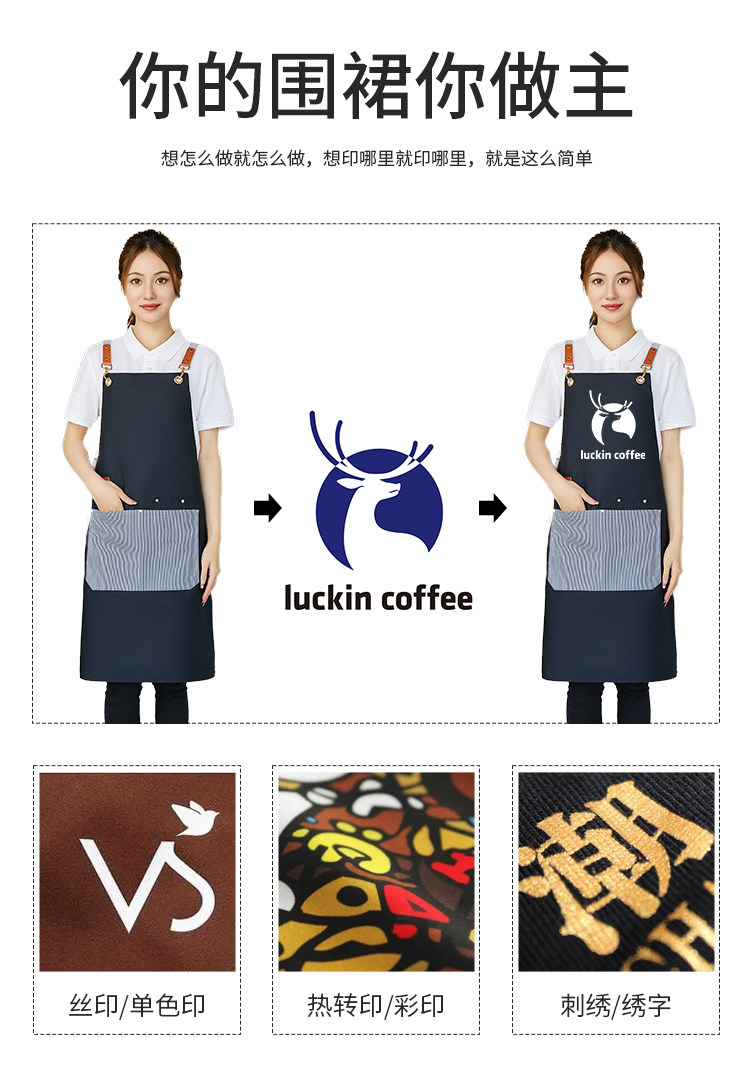 이황 공장 직접 공급 폴리 에스테르면 캔버스 앞치마 크로스 어깨 끈 큰 포켓 스트라이프 작은 배치 인쇄 로고 국경
