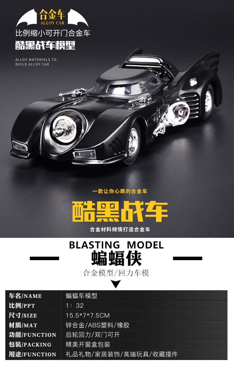 국경 간 1:32 합금 박쥐 전차 어린이 장난감 자동차 장식은 자동차 모델 소리와 가벼운 음향 효과 도매스토어 가기