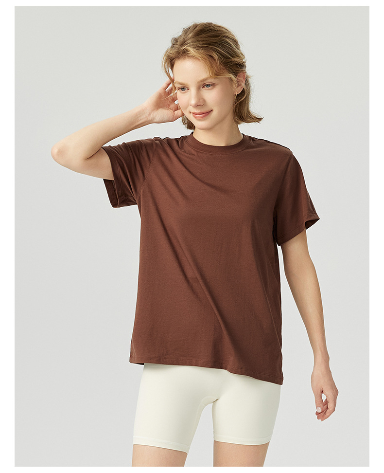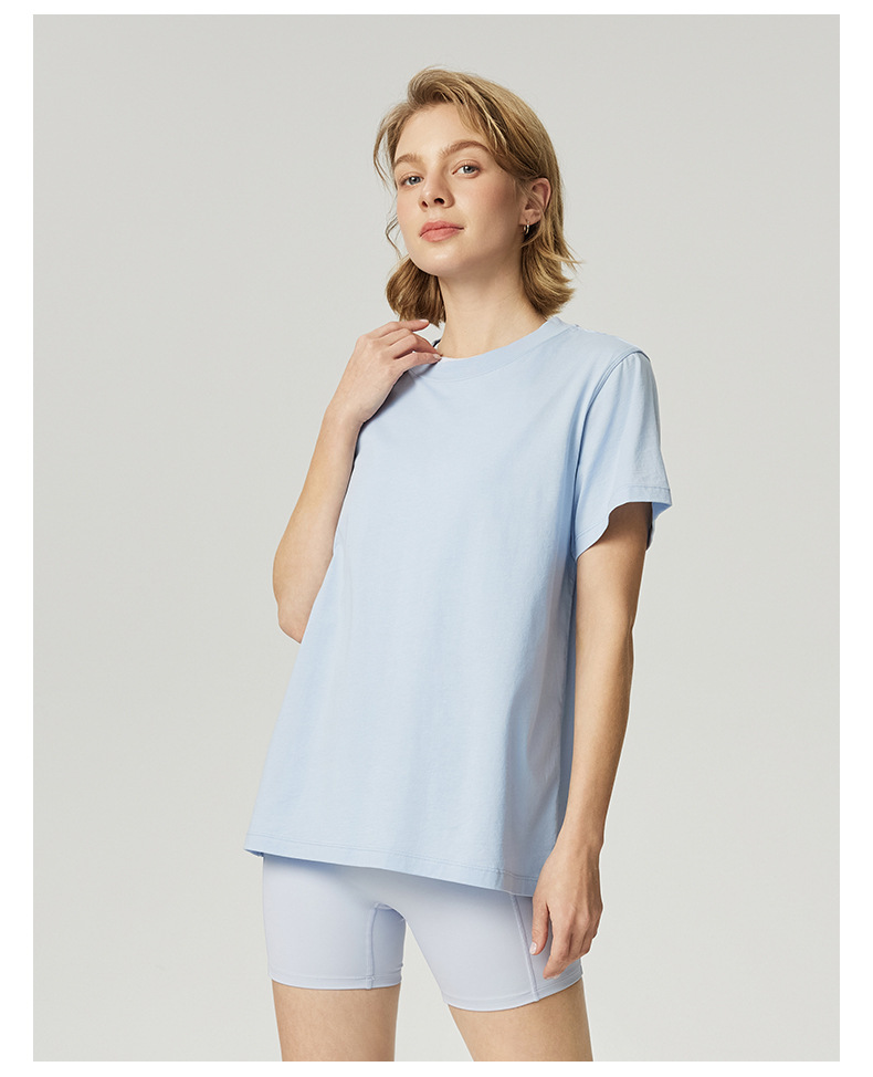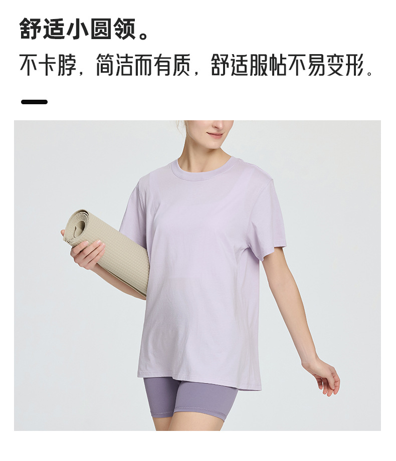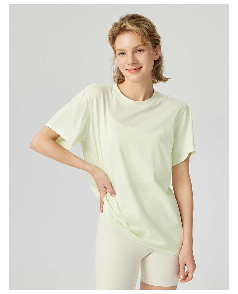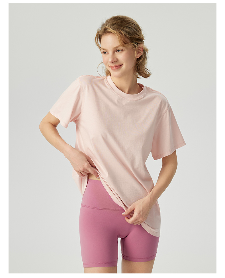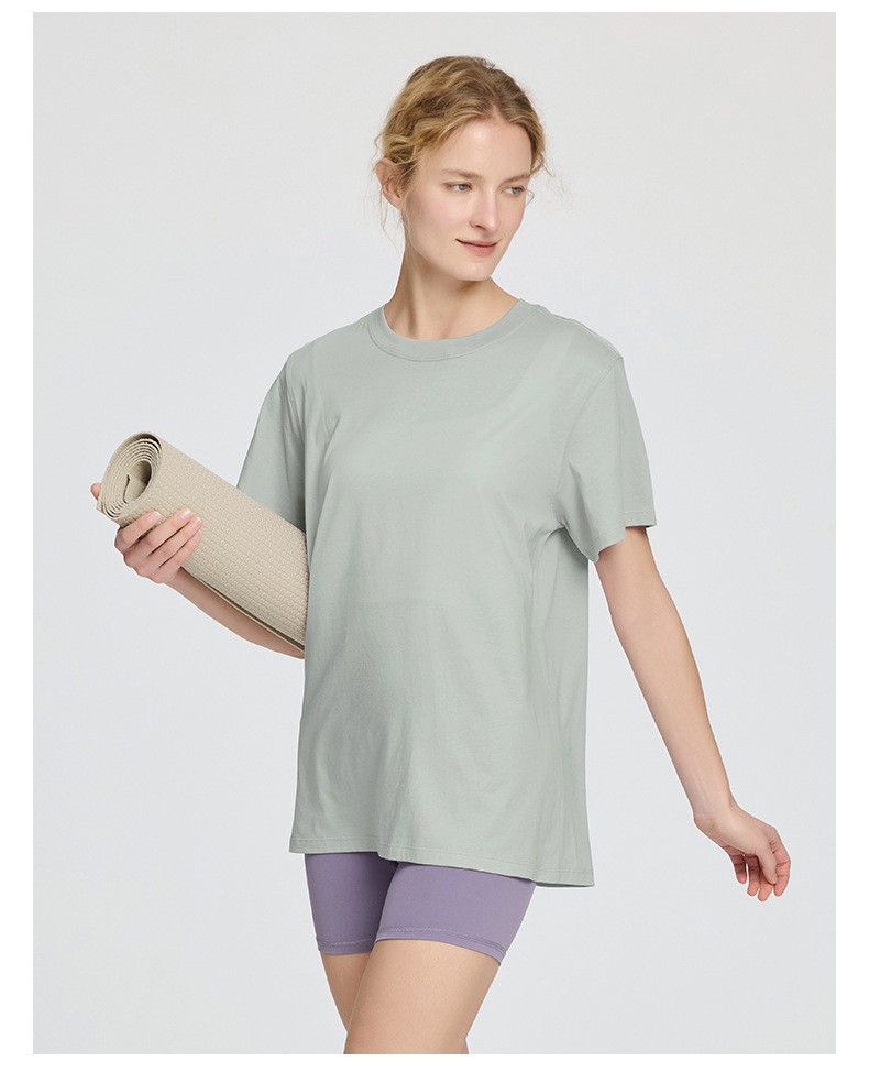 요가 의류 여성용 피마 코튼 루즈 라운드 넥 솔리드 컬러 베이스 셔츠 셔츠 스포츠 피트니스 짧은 소매 탑