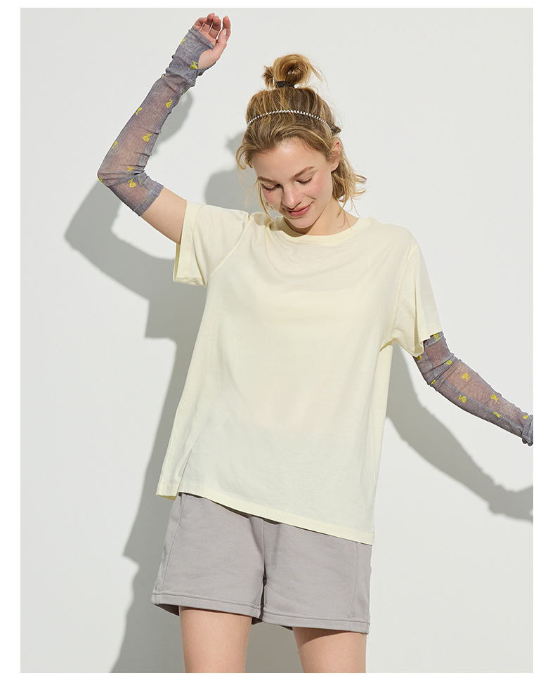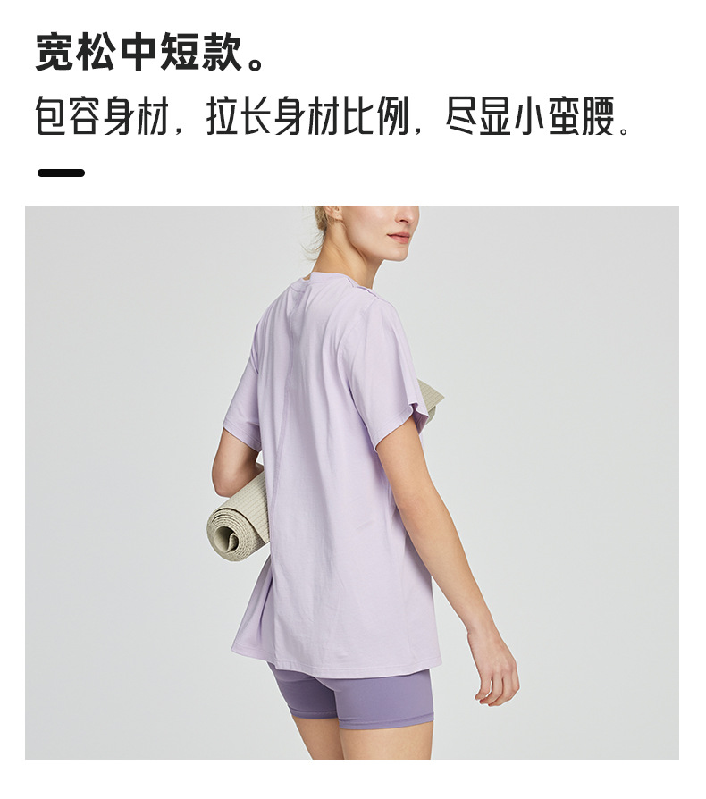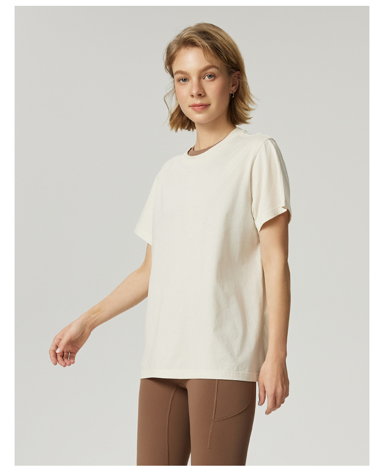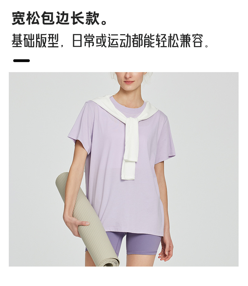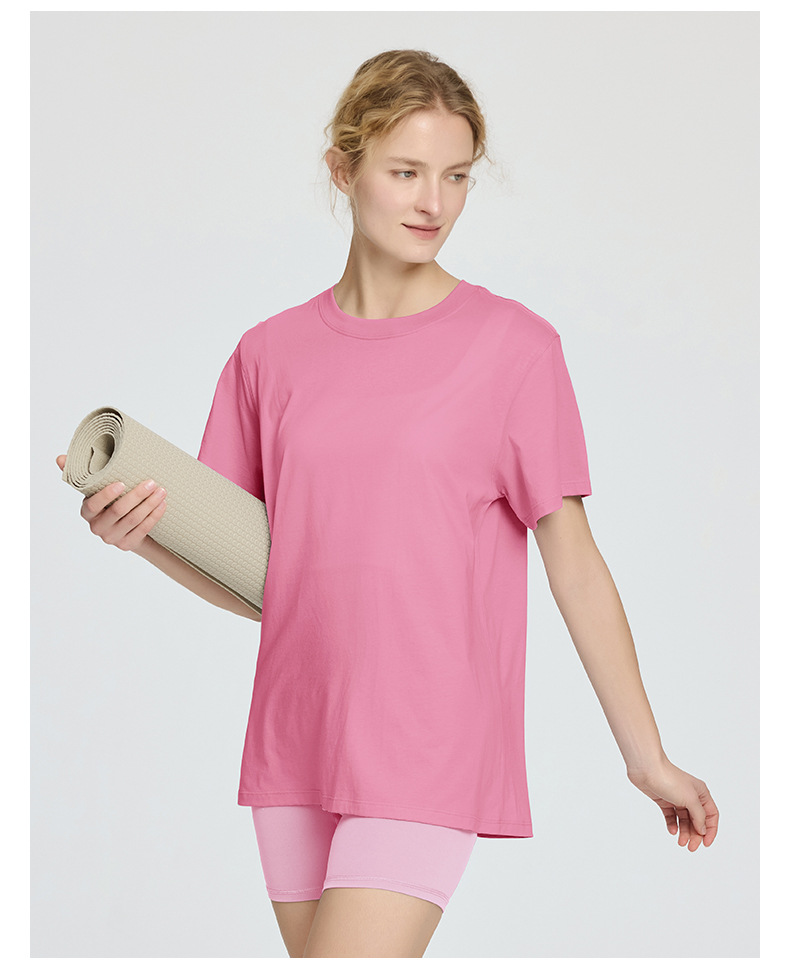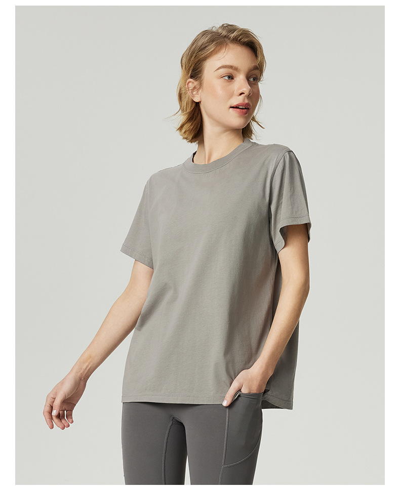요가 의류 여성용 피마 코튼 루즈 라운드 넥 솔리드 컬러 베이스 셔츠 셔츠 스포츠 피트니스 짧은 소매 탑