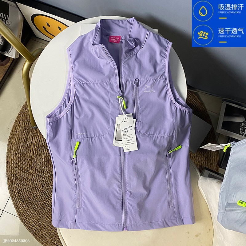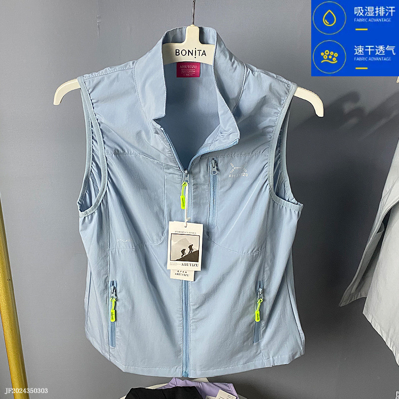 봄, 여름, 가을 2024 여성을위한 빠른 건조 조끼 새로운 느슨한 얇은 등산 사이클링 그룹 통기성 조끼 카디건 코트