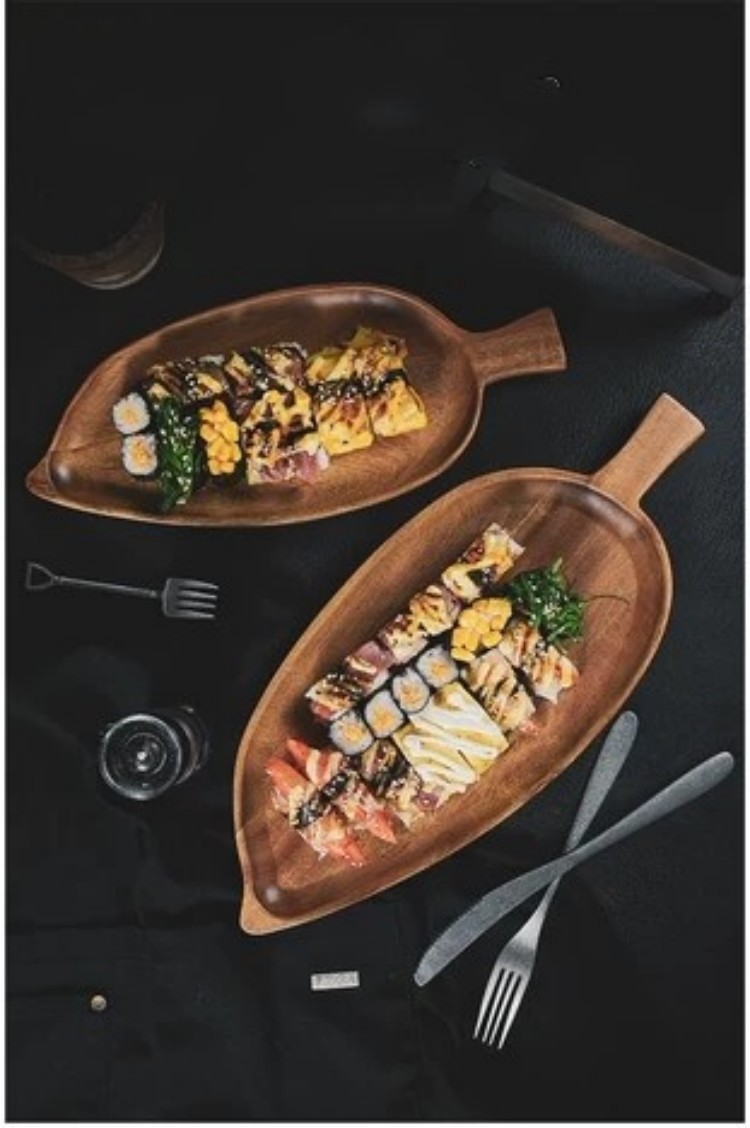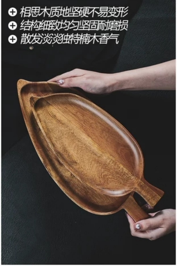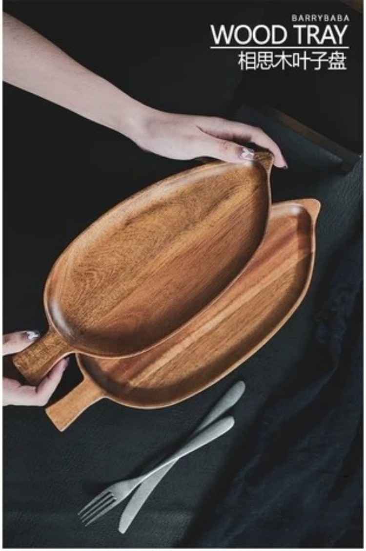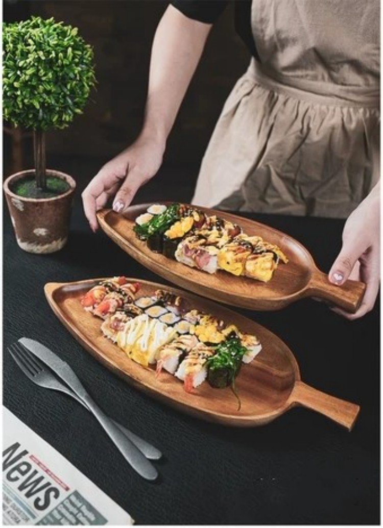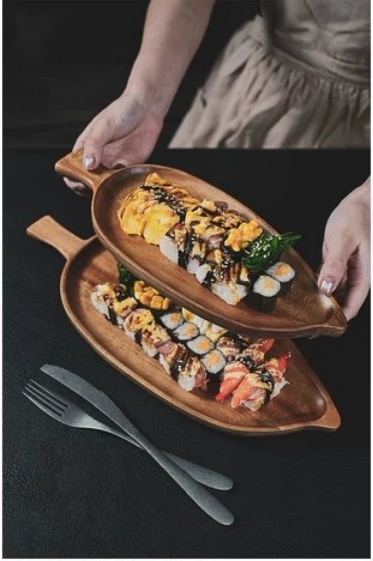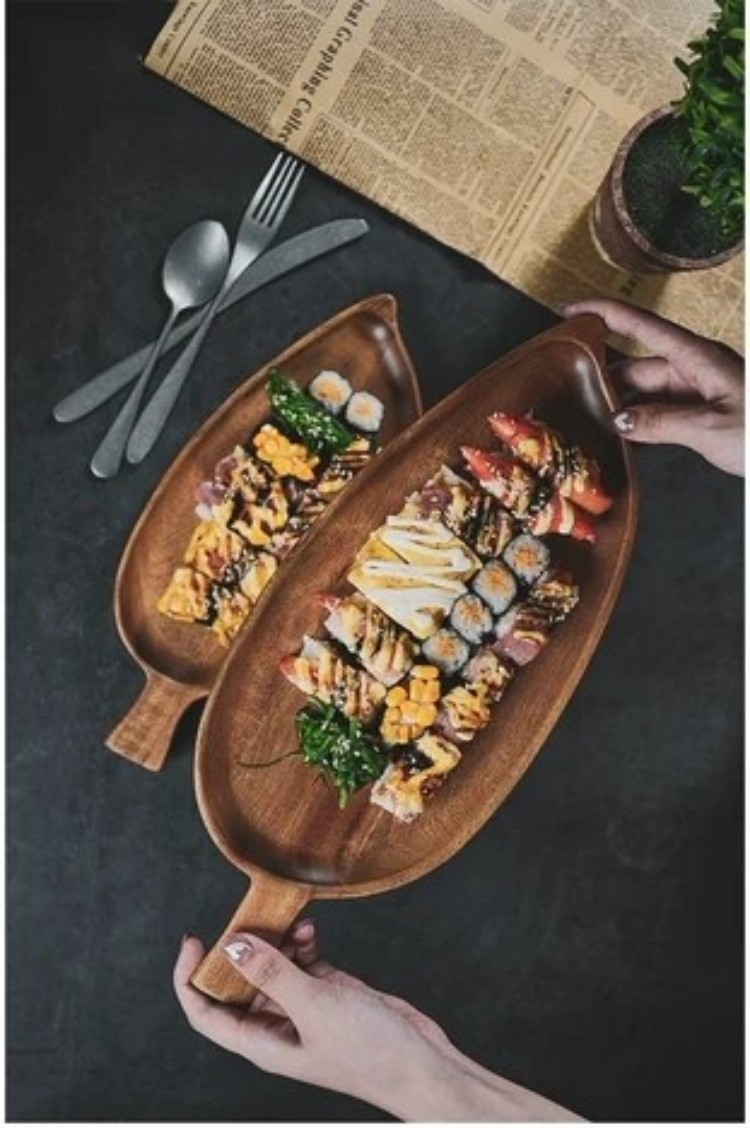 일본식 고급 나무 트레이 애프터눈 티 스낵 스시 플레이트 잎 모양의 플레이트 아카시아 나무 티 플레이트스토어 가기