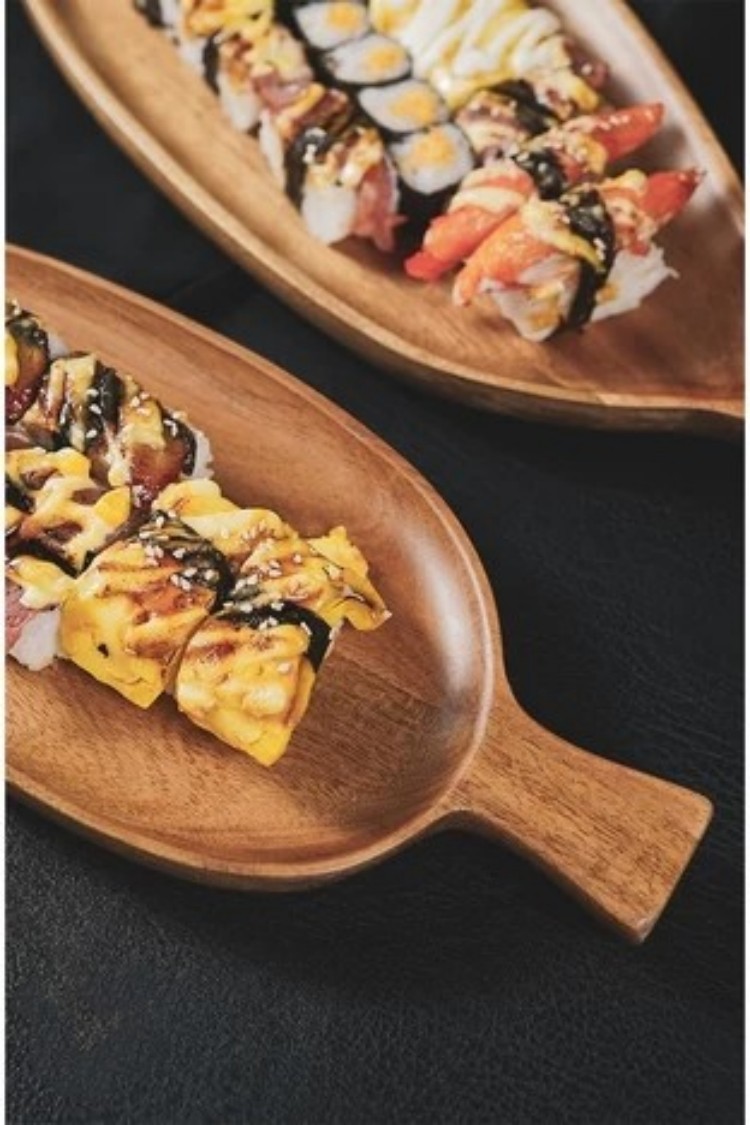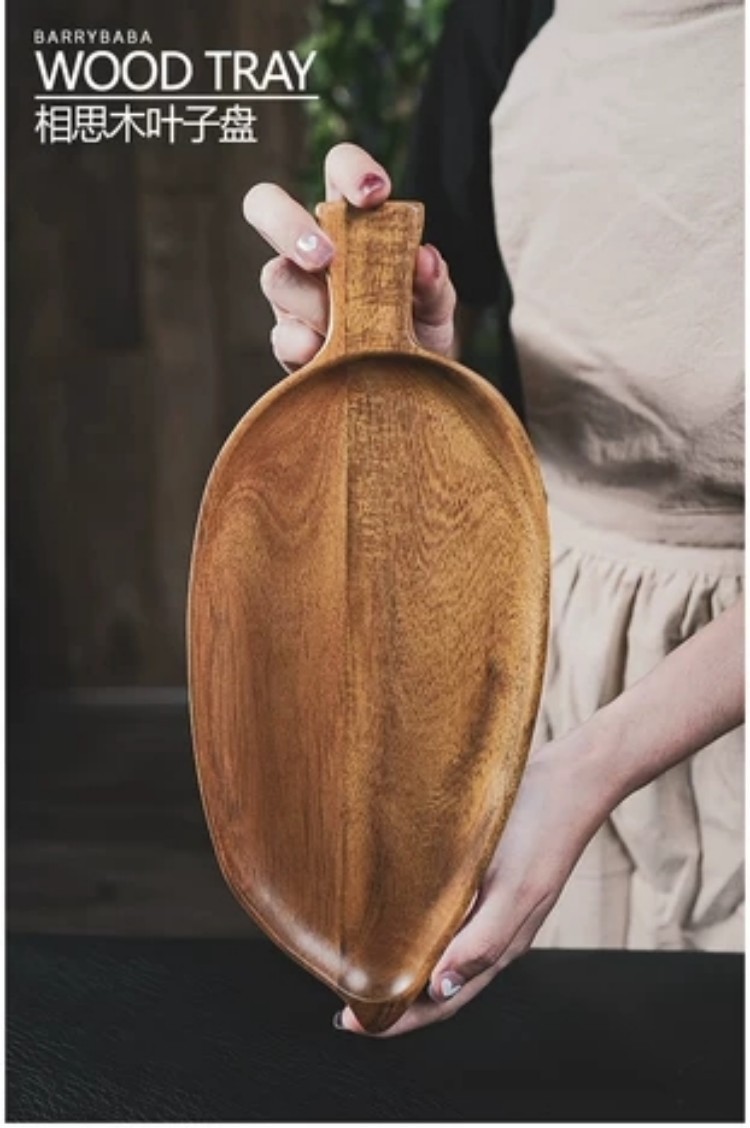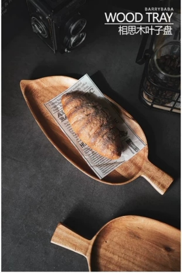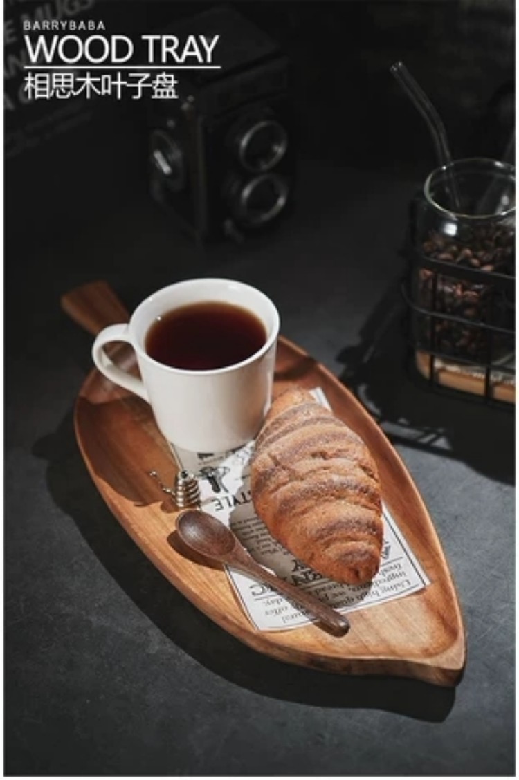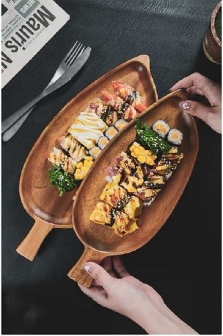 일본식 고급 나무 트레이 애프터눈 티 스낵 스시 플레이트 잎 모양의 플레이트 아카시아 나무 티 플레이트스토어 가기