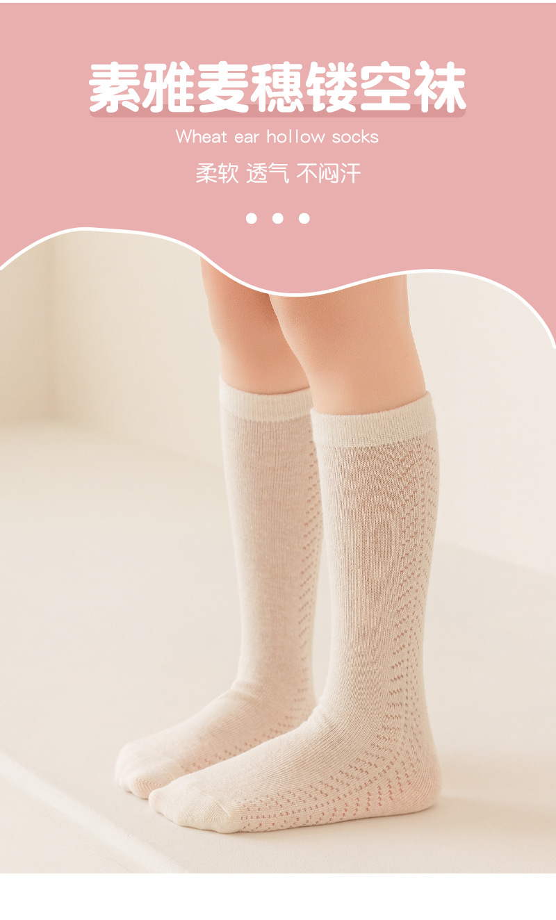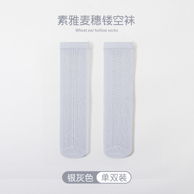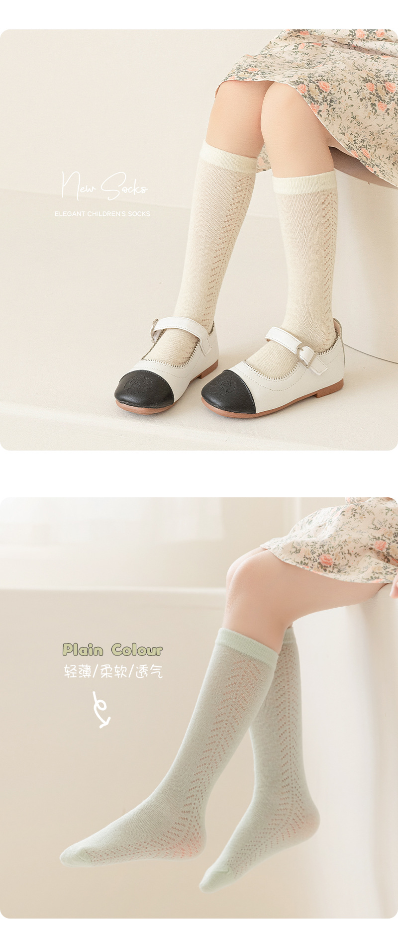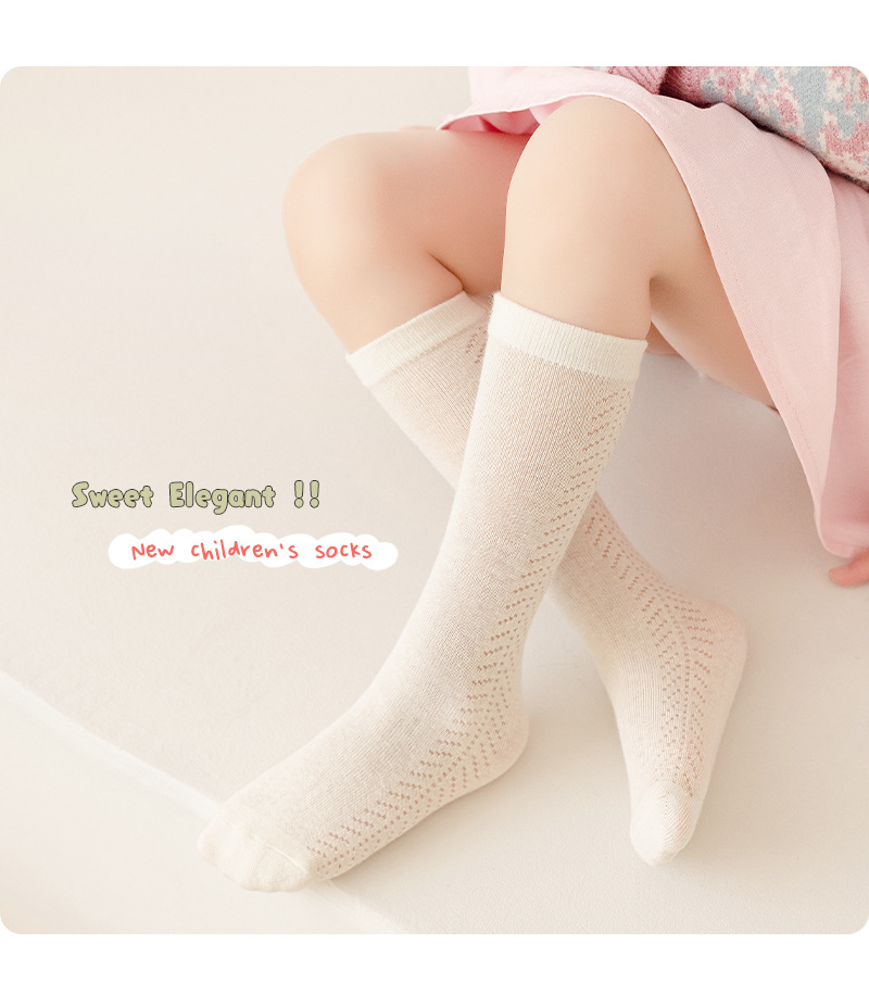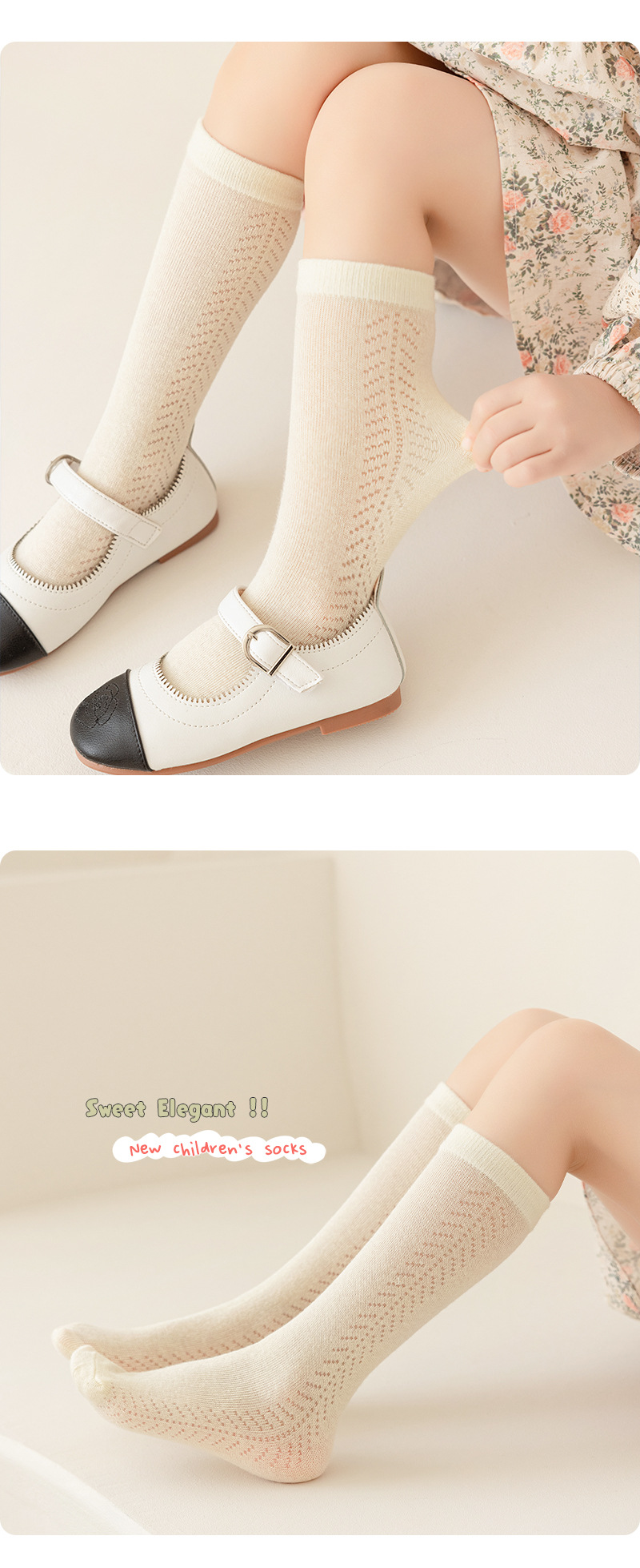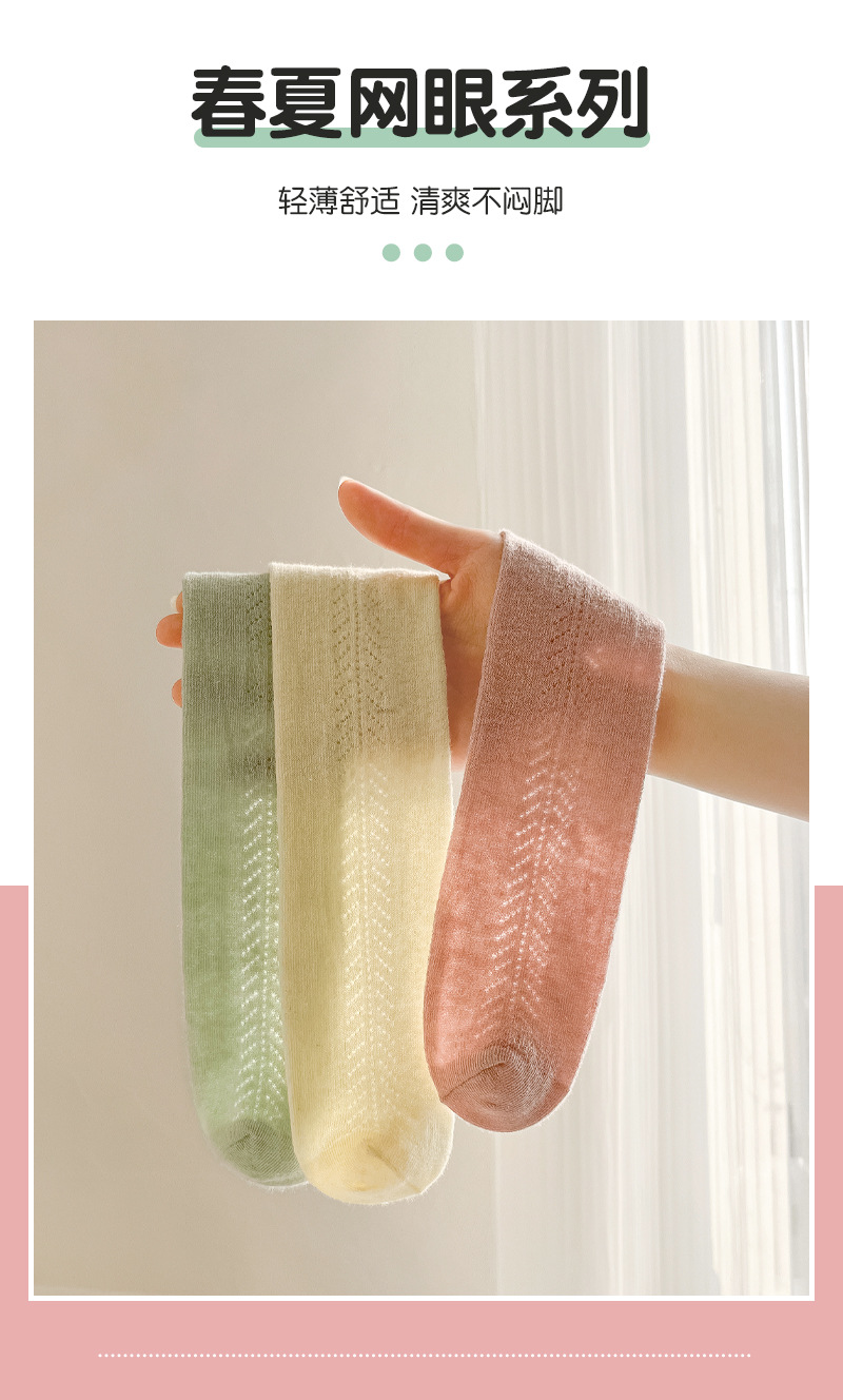 소녀 양말 2024 봄과 여름 새로운 패션 메쉬 중공 양말 소녀의 편안한 통기성 단색 어린이 종아리 양말스토어 가기